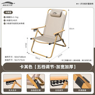 北岳户外折叠椅子便携露营装备可折叠克米特椅躺椅钓鱼沙滩椅野餐桌椅 卡其色【五档调节-加宽加厚】