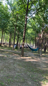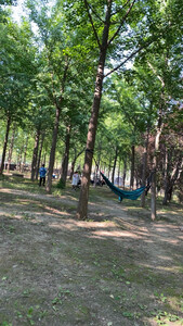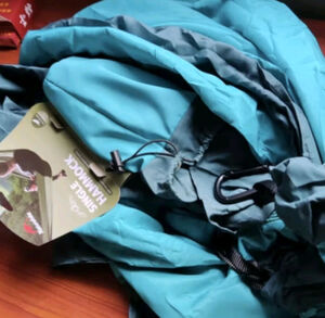 很好用的吊床,重量能接受,尺寸双人用起来很方便,下点小雨,还能反拉过来遮住.颜色也耐脏