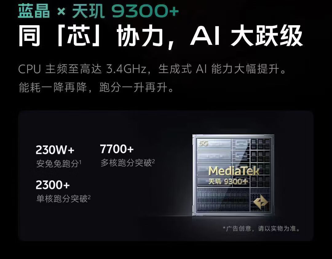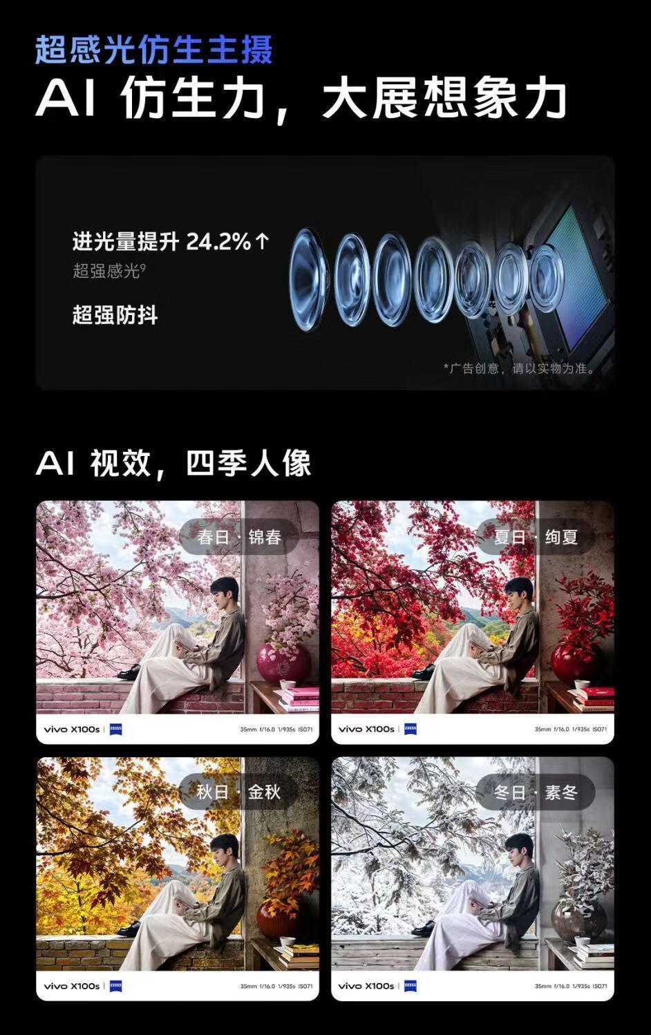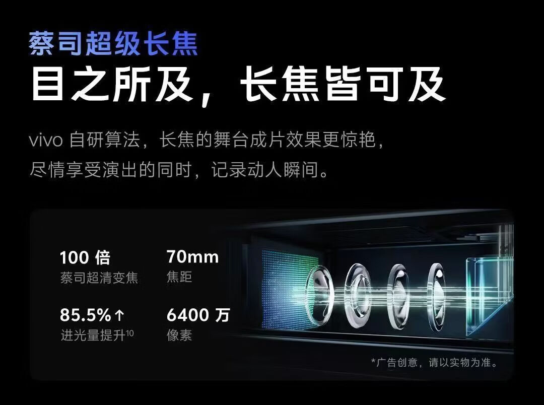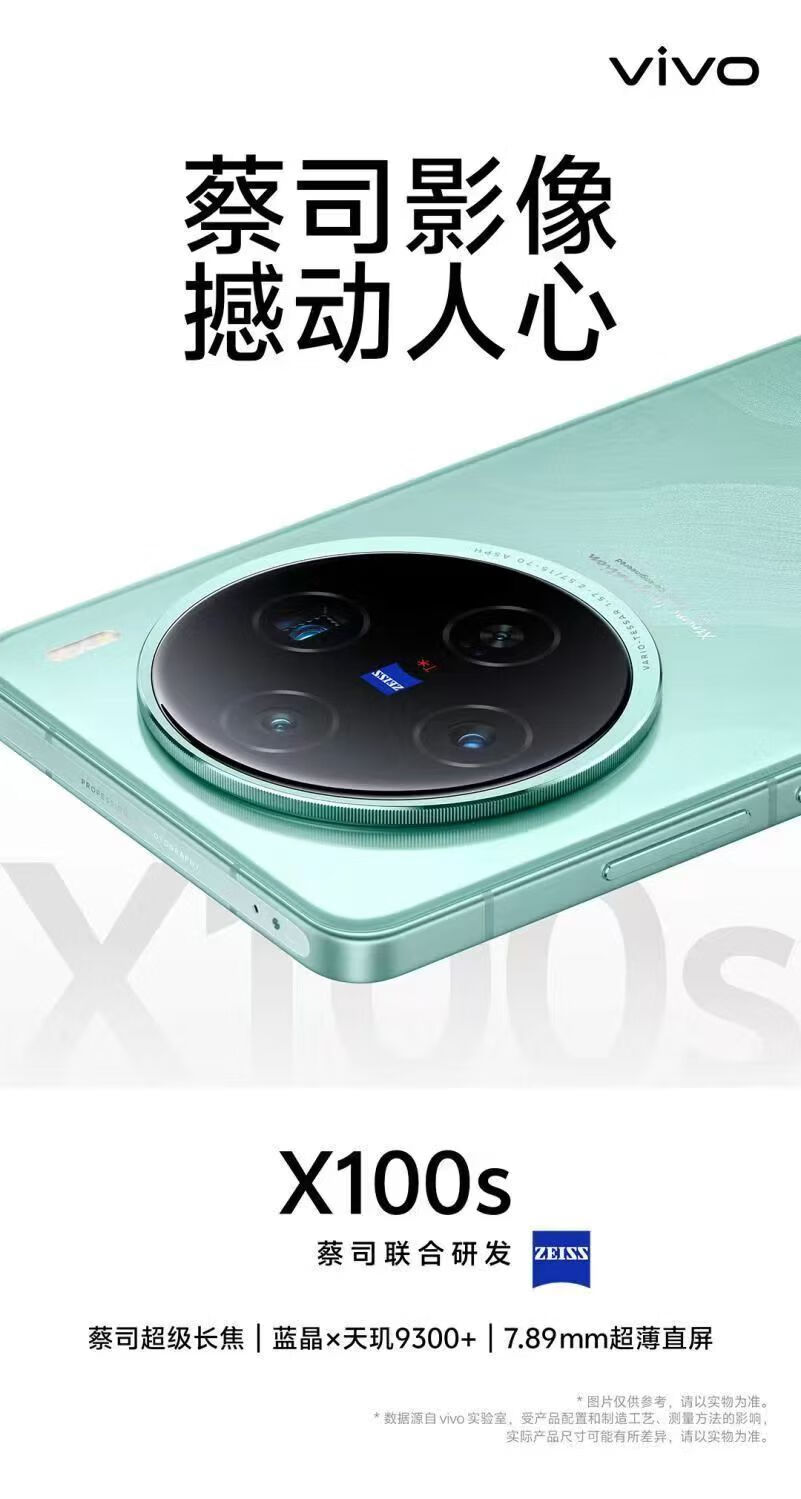 vivox100s 超薄直屏旗舰 蓝晶天玑9300+ 蔡司长焦7.8mm 5G 拍照AI手机 深空灰 16+512 单机+第三方品牌快充+店保一年