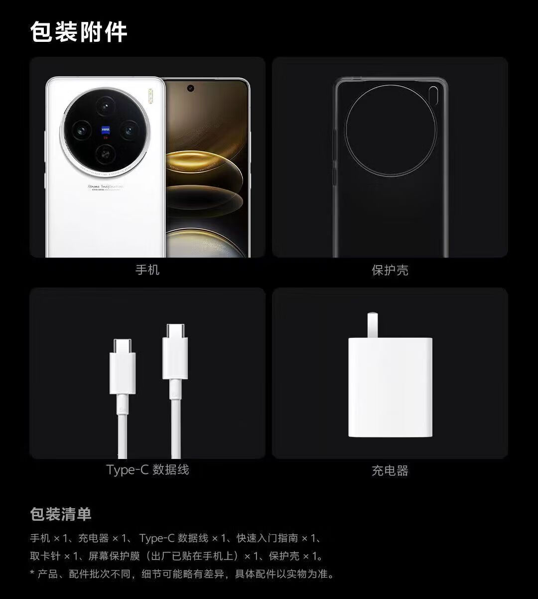 vivoX100/X100pro 天机9300 5G全网通双卡 蔡司影像 蓝海5000毫安电池 X100 辰夜黑 16GB+512GB 单机+第三方品牌快充+店保1年