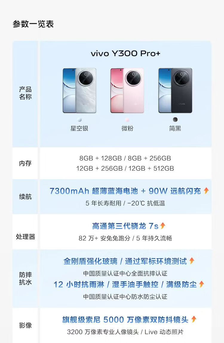 vivoY300 Pro+ 7300mAh蓝海电池 第三代骁龙7s 金刚磐石架构 AI手机 Y300 Pro+ 微粉 12GB+256GB 单机+电子保卡已注册+全国联保