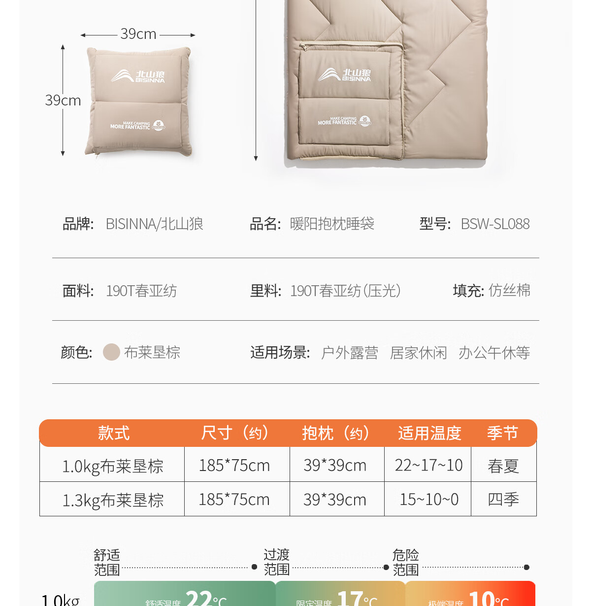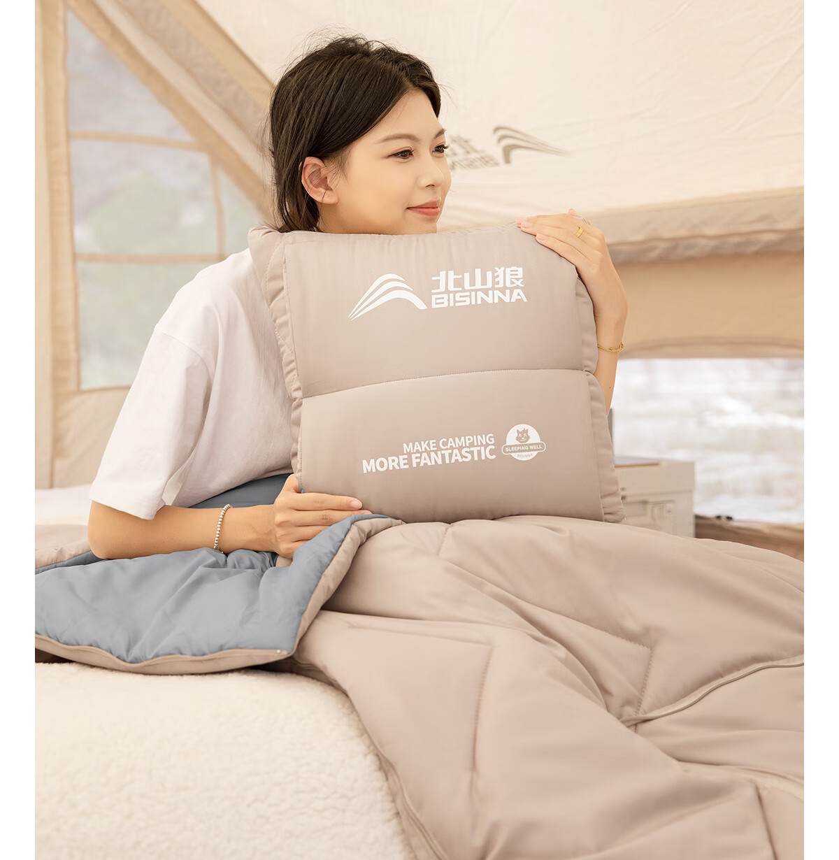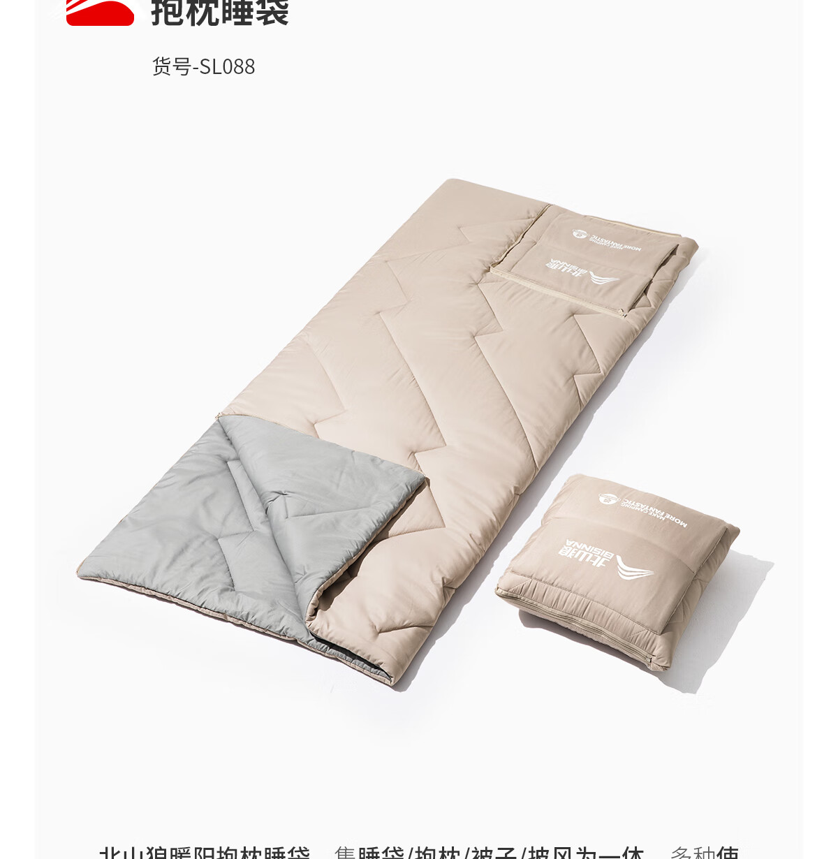 北山狼 抱枕睡袋成人四季通用款 办公室午休车载睡袋户外 1.3kg布莱艮棕【10-15℃】