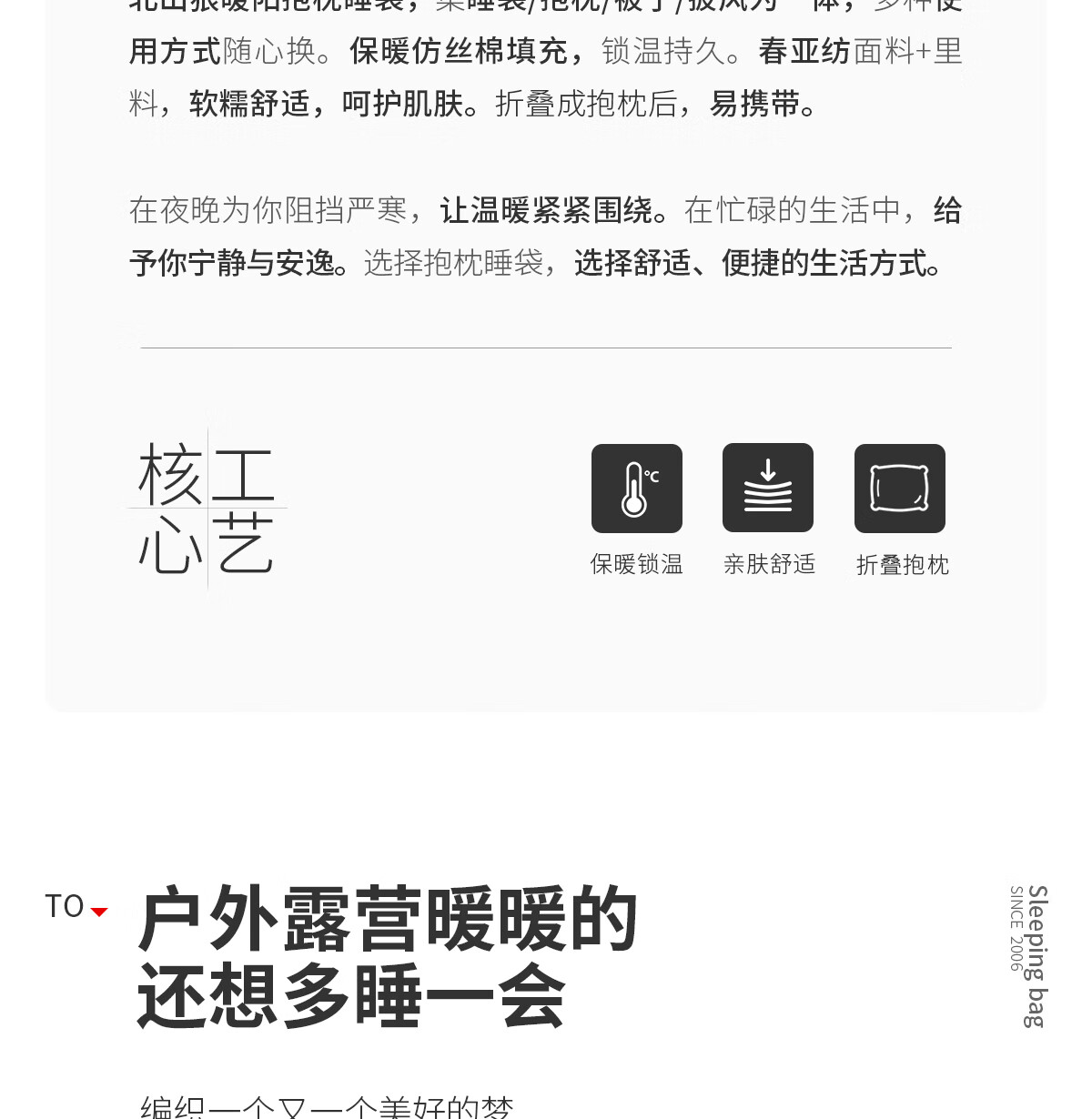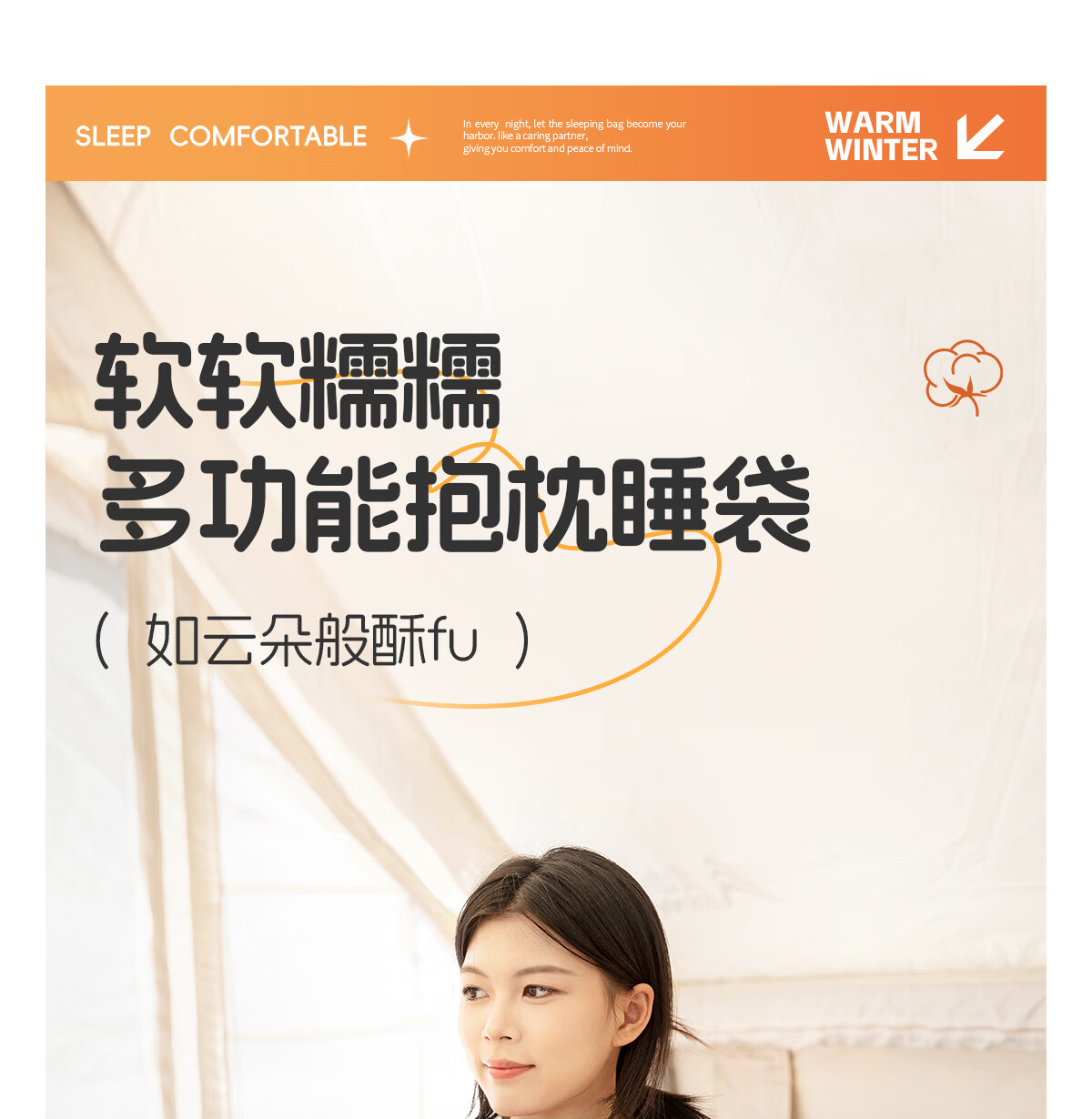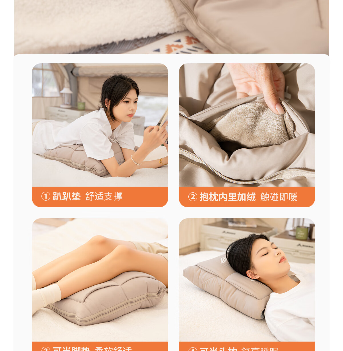 北山狼 抱枕睡袋成人四季通用款 办公室午休车载睡袋户外 1.3kg布莱艮棕【10-15℃】