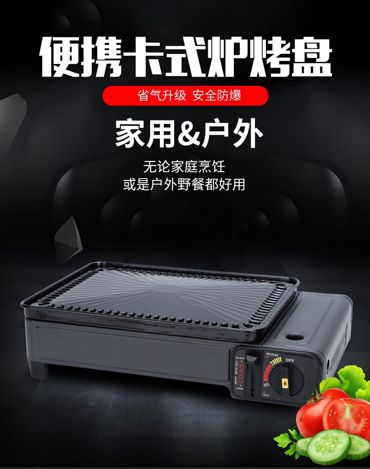 脉鲜家用户外便携式炒菜卡式炉烧烤炉不粘铁板烧烤肉盘移动式卡式炉 烧烤炉(带手提箱)