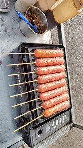 这个烤炉真是喜欢户外烧烤朋友的福音,不用生火就可以拎包烧烤,我选的烤肠套装多了一套烤肠盘,太酷了