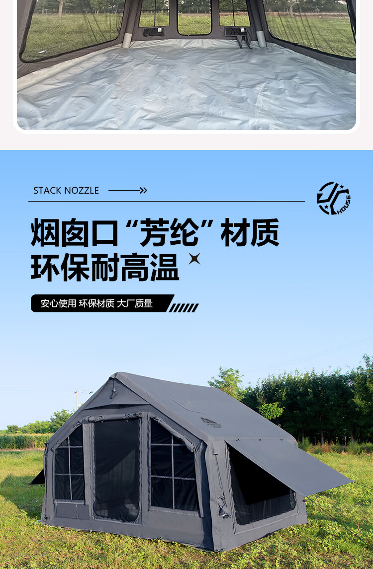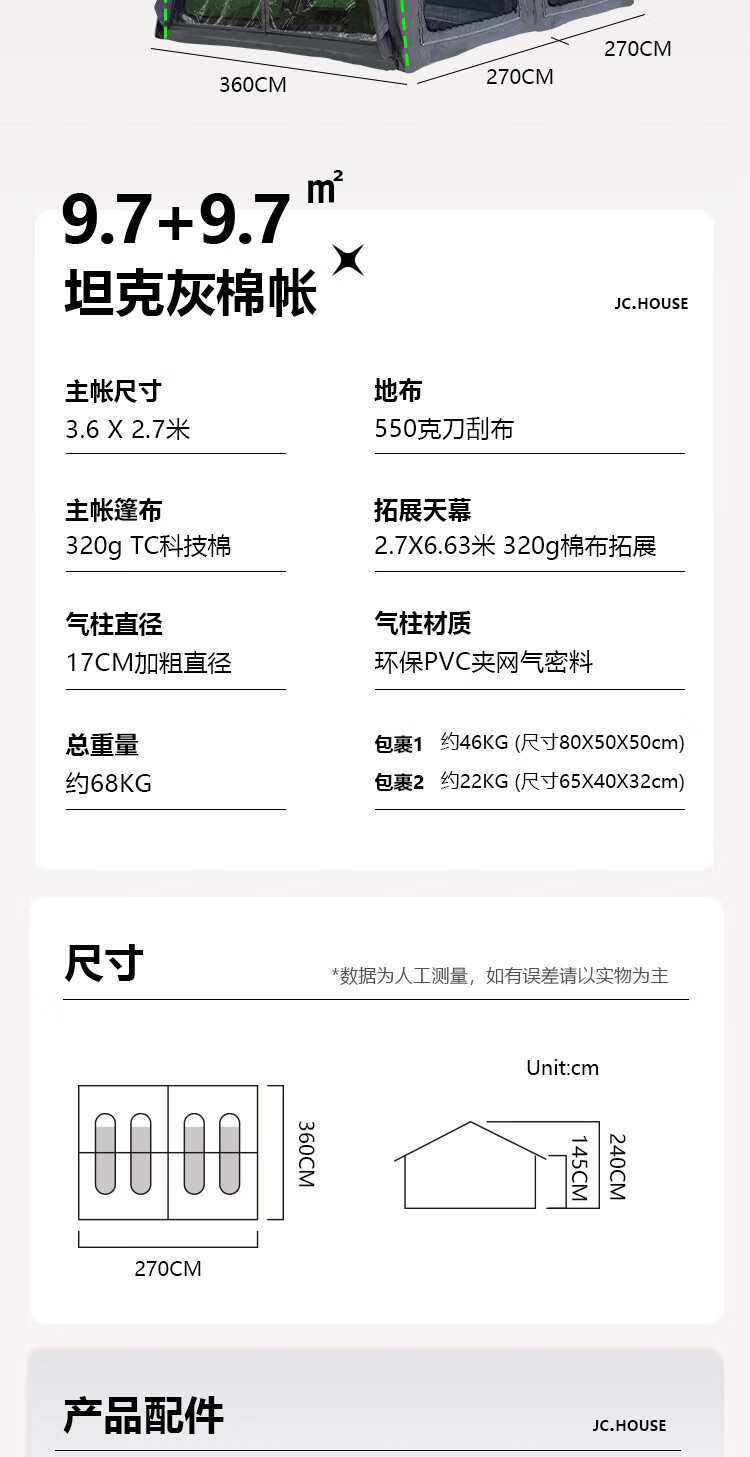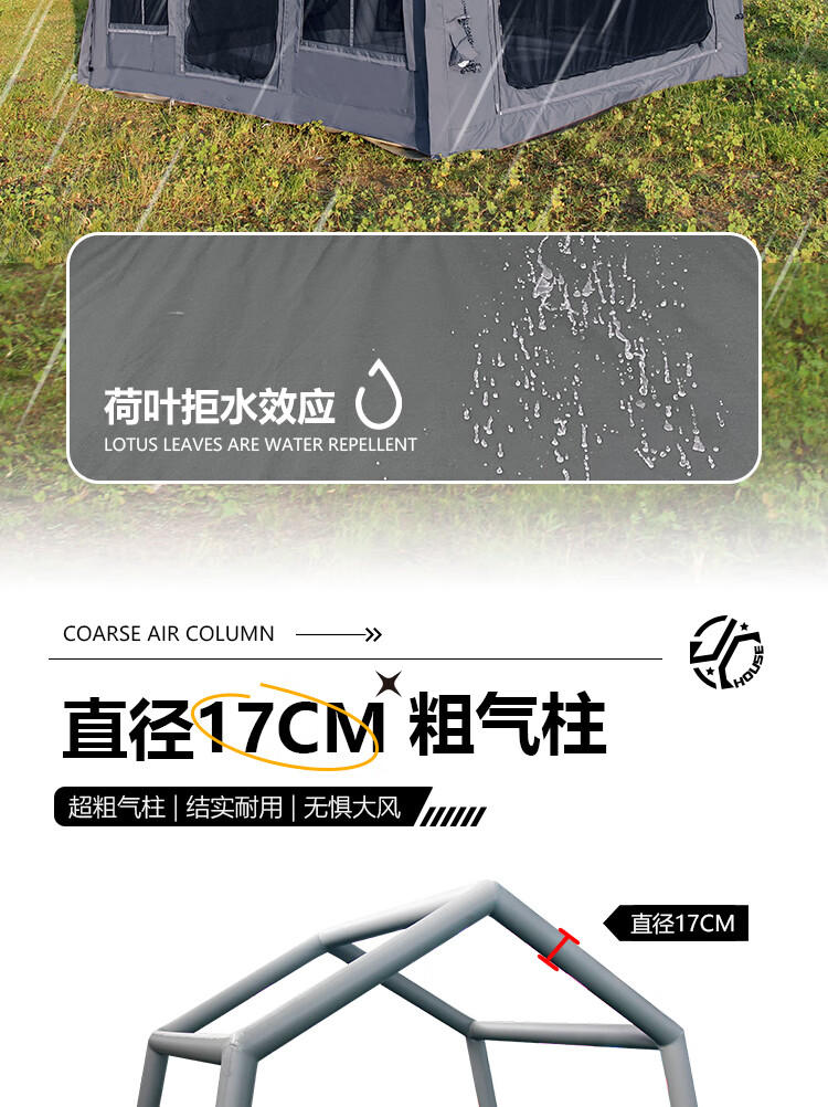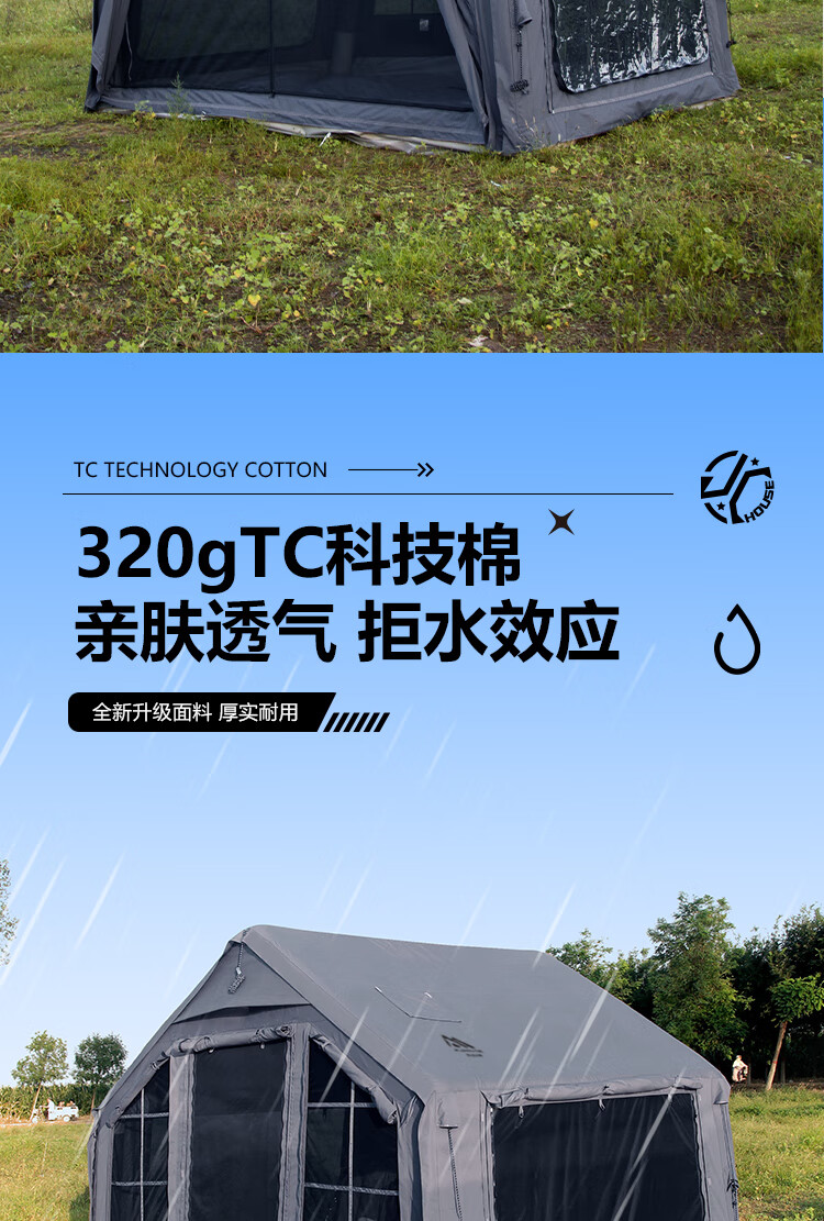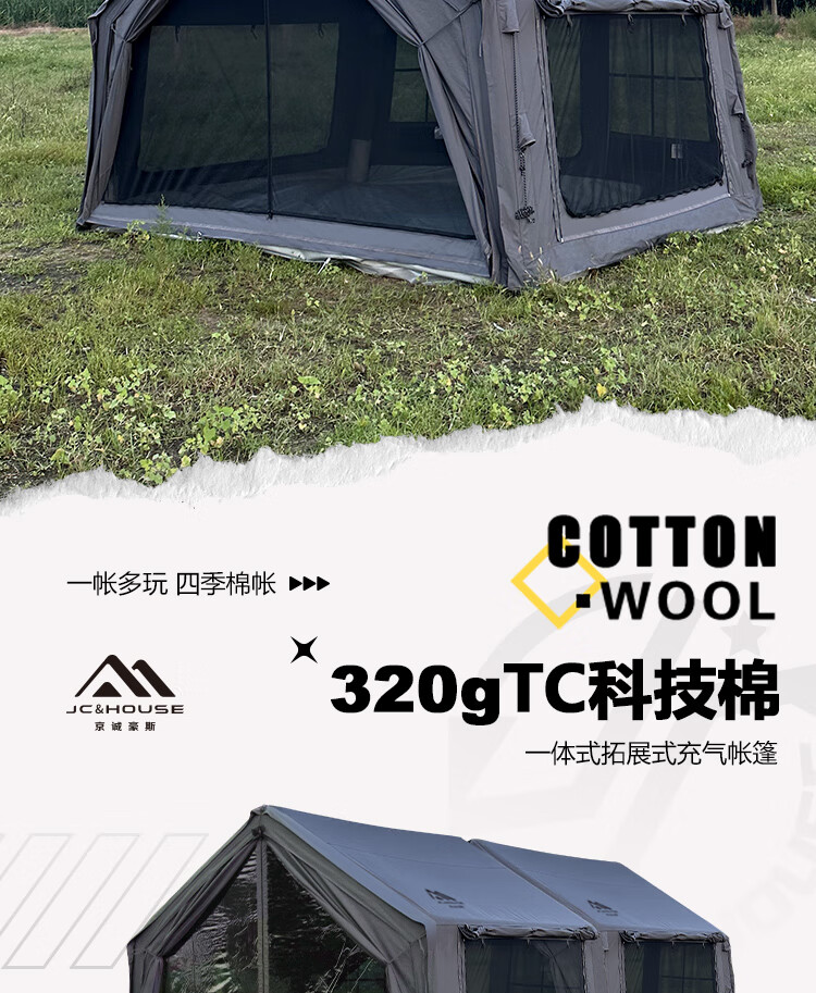 京诚豪斯19.4㎡( 9.7+9.7㎡)坦克灰充气帐篷露营带拓展棉布帐篷 豪斯(9.7㎡+9.7㎡)坦克灰充气帐