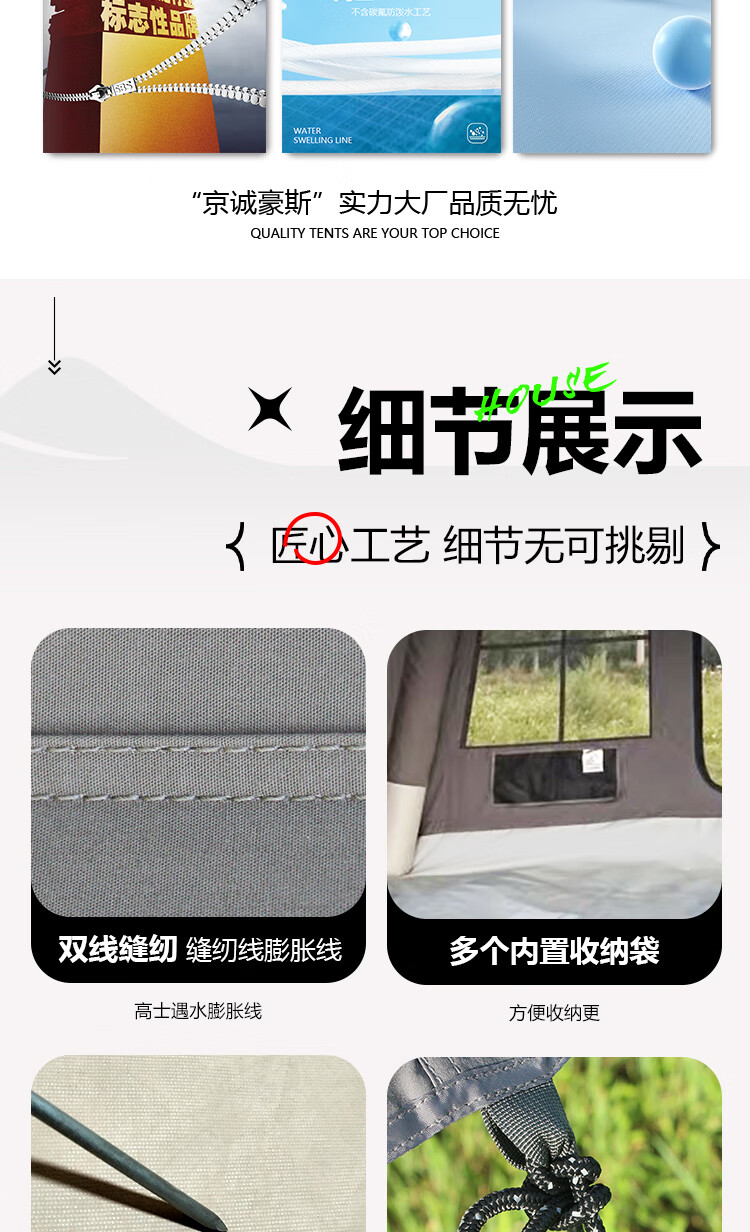 朋友一直推荐京诚豪斯的帐篷,犹豫8+8.8还是9.7+9.7,双十一价格很划算,果断下单9.7,质量特别好,很厚实,除了沉,没有任何毛病,全是优点,非常适合冬天露营使用,保暖效果很好,升级款的很棒,拓展也有大窗户,非常适合下雪天露营,既保暖又能看雪景。还有隐私帘设计。