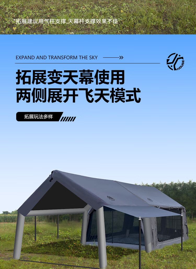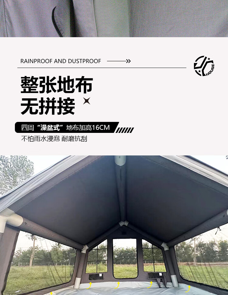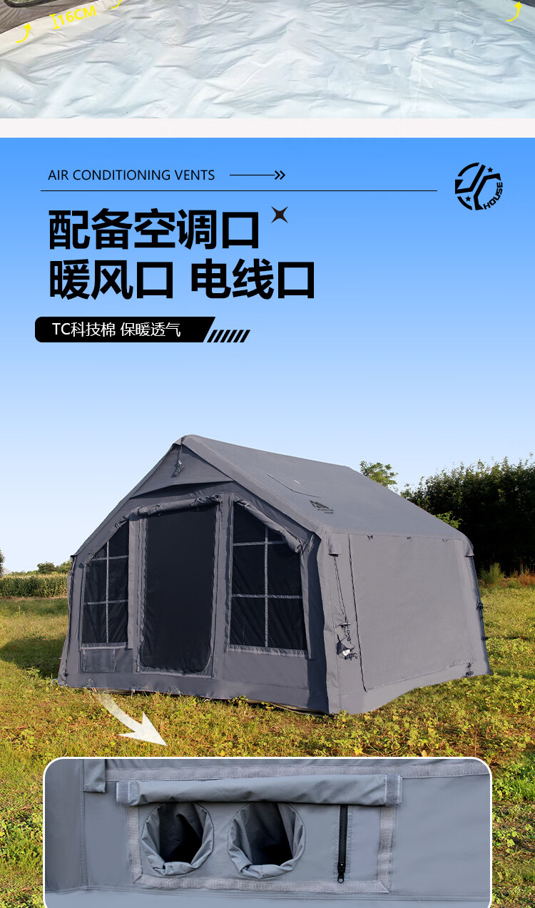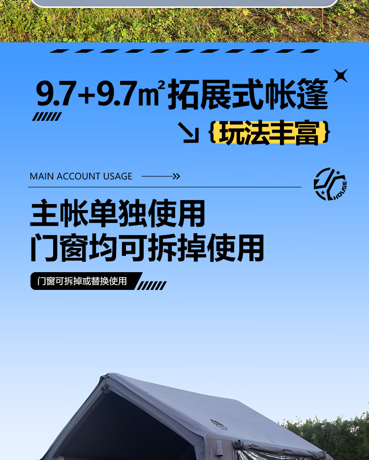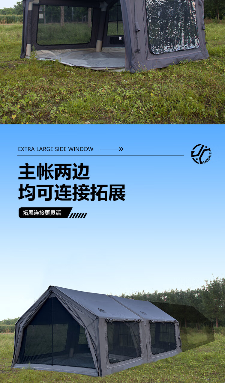 京诚豪斯JcHouse19.4㎡(9.7+9.7㎡)320克科技棉充气帐篷9.7平带拓展屋脊帐 豪斯9.7平主帐+拓展+TPU帘