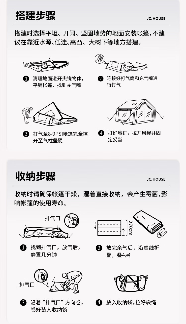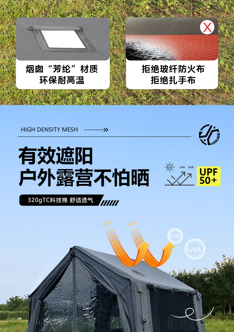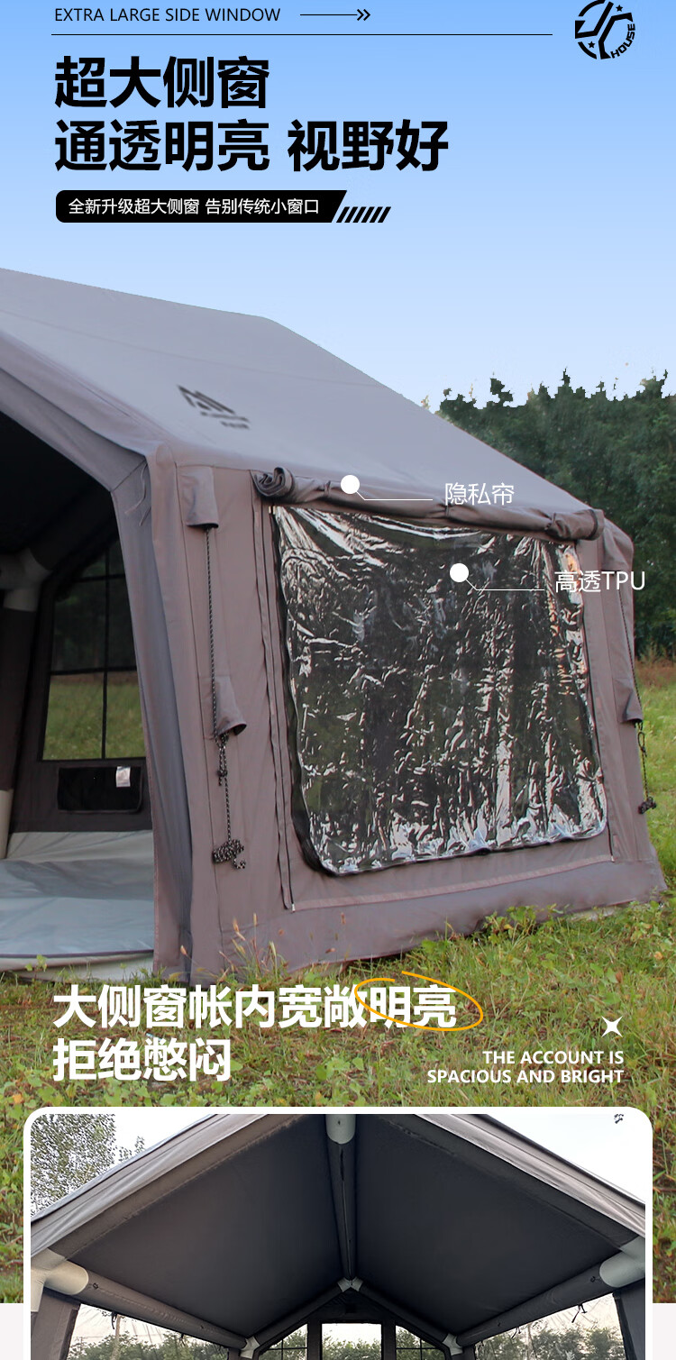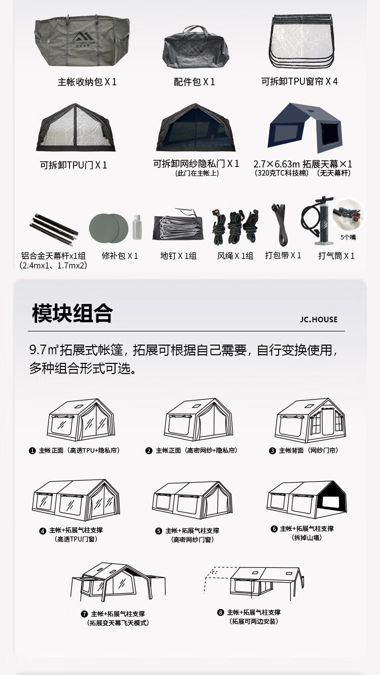 京诚豪斯JcHouse19.4㎡(9.7+9.7㎡)320克科技棉充气帐篷9.7平带拓展屋脊帐 豪斯9.7平主帐+拓展+TPU帘