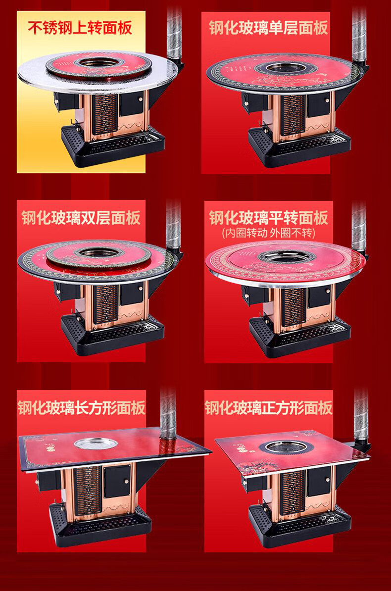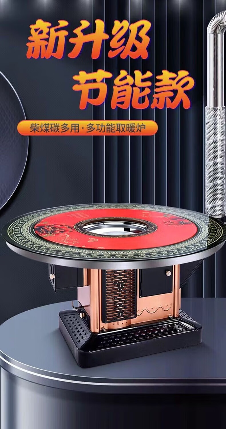 能师傅【送货上门】气化炉家用室内烤火炉柴煤两用节能无烟柴火炉灶农村 1.2米平转特厚轻奢防爆岩纹桌面【6-8人 柴煤两用】