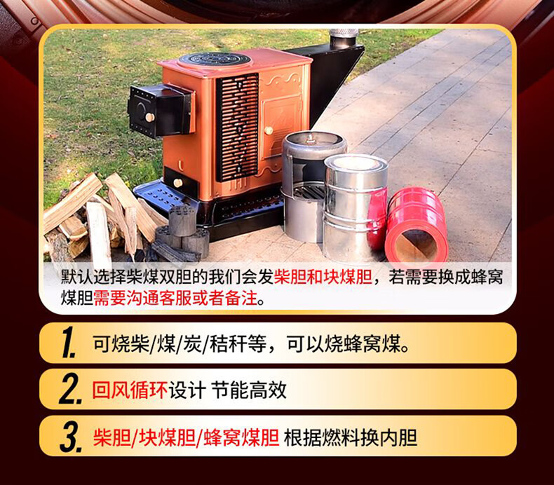 能师傅回风炉取暖炉柴火炉农村家用柴煤两用多功能烤火炉送货上门 1.2米不锈钢平转(柴煤双胆)