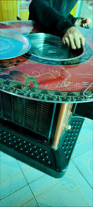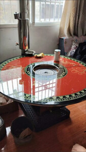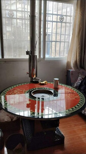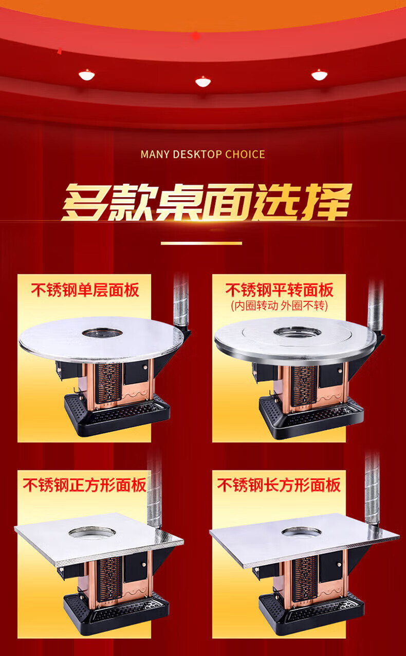 仕夕烁饭店自吸无烟净化一体地锅鸡灶台桌柴火鸡灶台铁锅炖锅台烧电烧气 自净化烧气灶1.6米圆桌 桌面镶嵌岩板不带岩板转盘