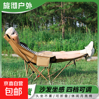 XMSJ户外露营折叠椅躺椅午休椅可坐可躺可睡承重500斤加厚家用月亮椅 黑色带腿托
