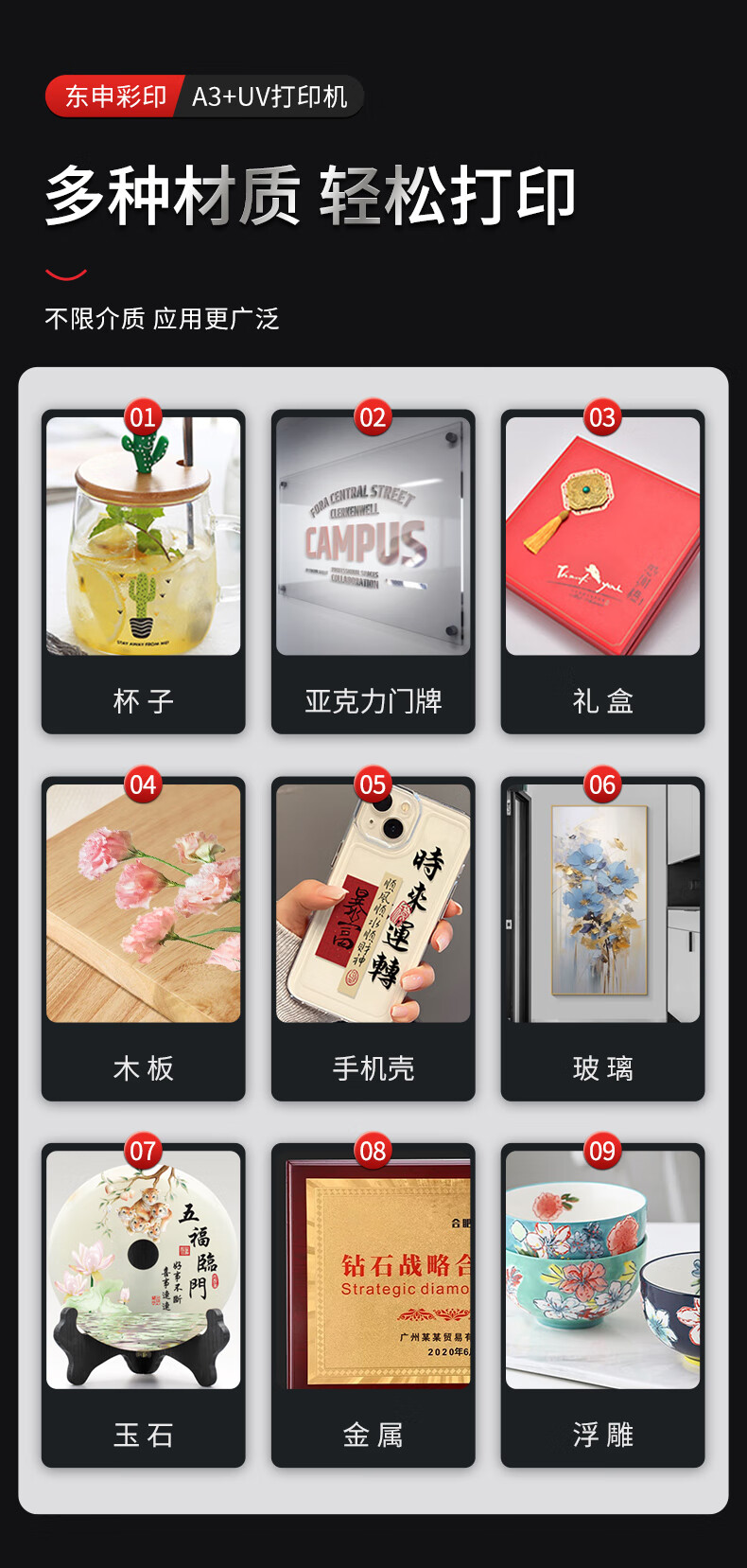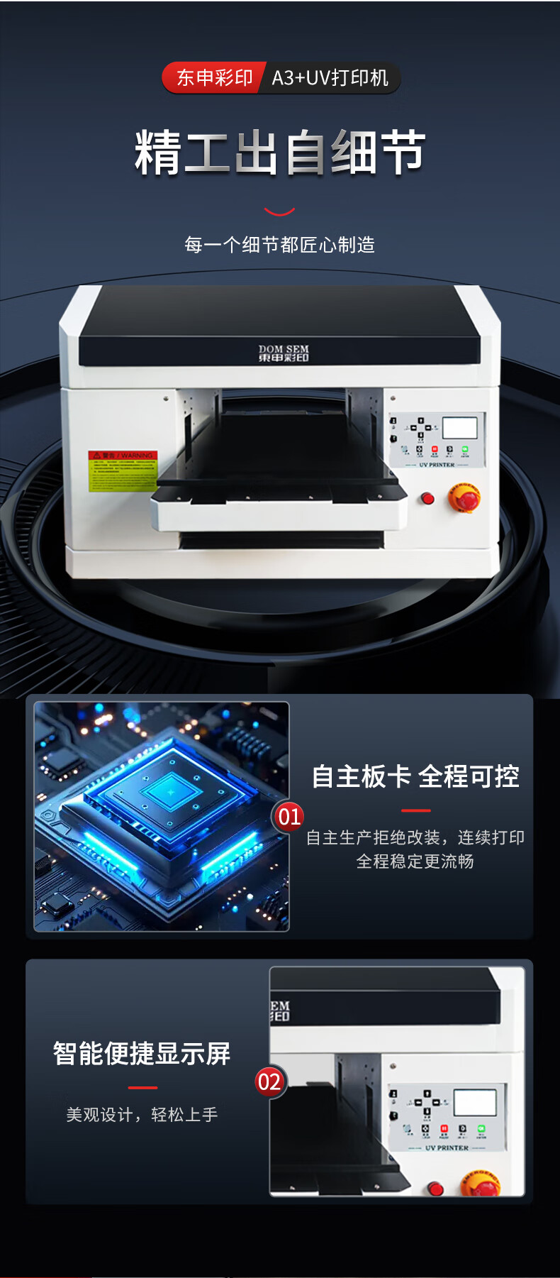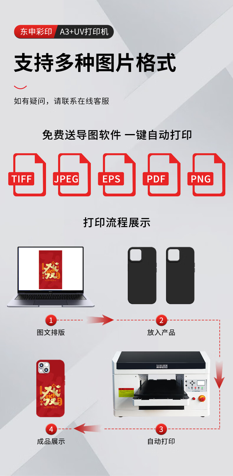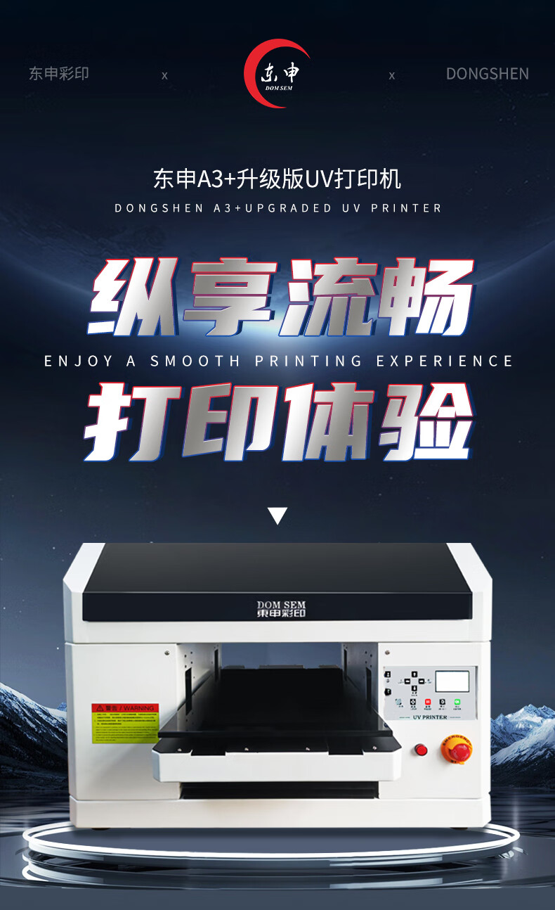 DOMSEM东申uv打印机3d印刷机喷墨绘图仪3050小型定制三d工业级a4标签海报速印机手机壳水晶标亚克力打印 定金拍下联系人工(默认发样品角贴一个) 支持幅面30*50cm