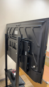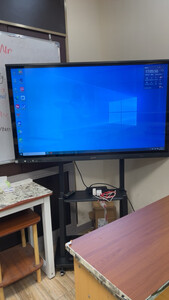 原来用的投影仪,分辨率太低不清晰,换了这款视基的85寸会议平板一体机,4k分辨率,显示非常清晰,亮度也足够,比原来的投影仪清晰多了。平板自带i7处理器和win10系统,可以不用电脑,直接打开电脑上的文档,也可以接自己的电脑,一机多用。前面板上3个USB接口,一个HDMI接口,一个typec接口,侧面还有USB和HDMI接口,可以说接口足够用。配了一条教鞭,两支手写笔,底座能移动,可以锁死。手写也比较流畅,总之非常好用。