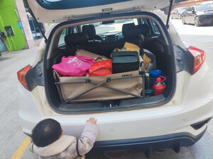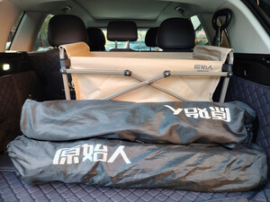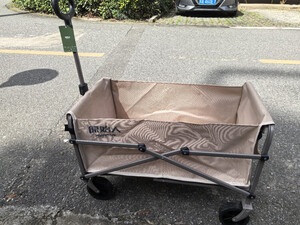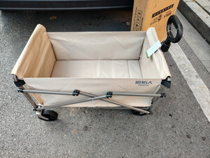 第二个户外小拖车,质量比之前那个好一点。 选择的这款尺寸略小一些,尾部不能放平,户外桌椅有些放不下,小区周边用一下还行。