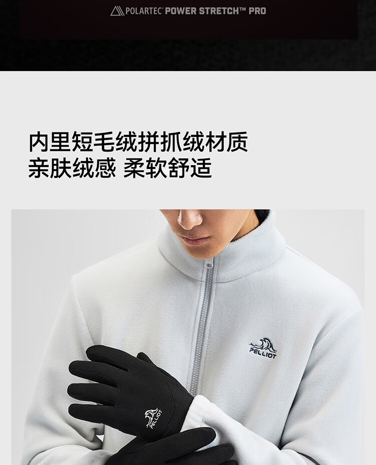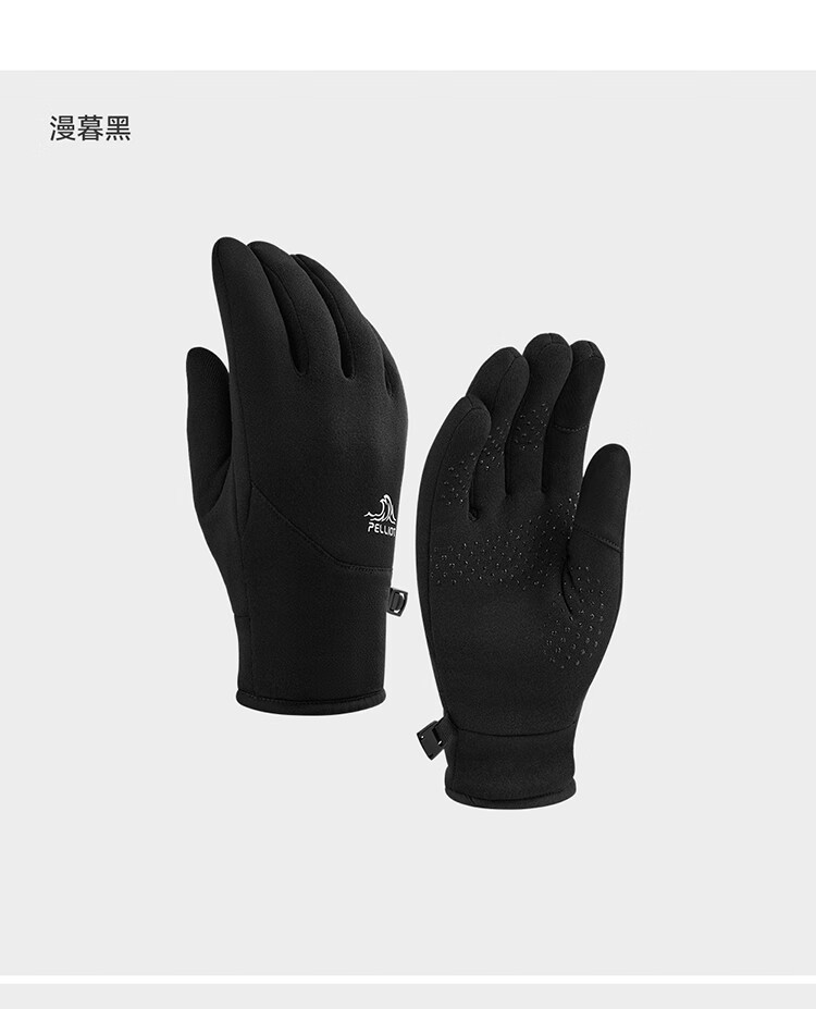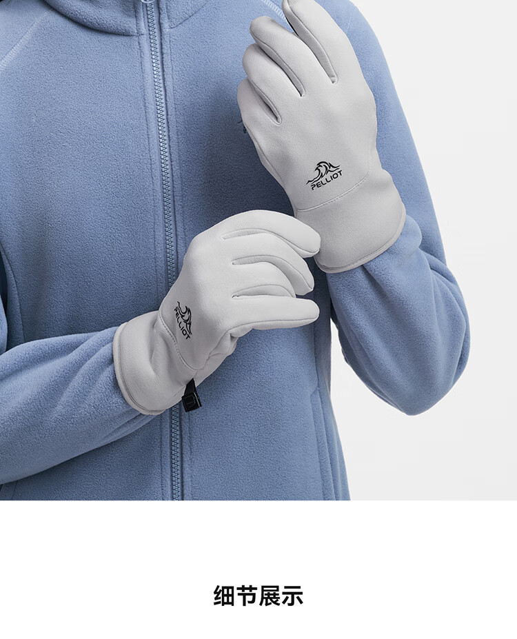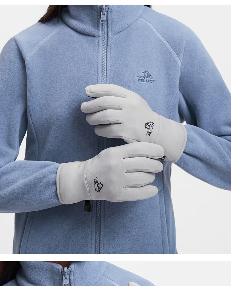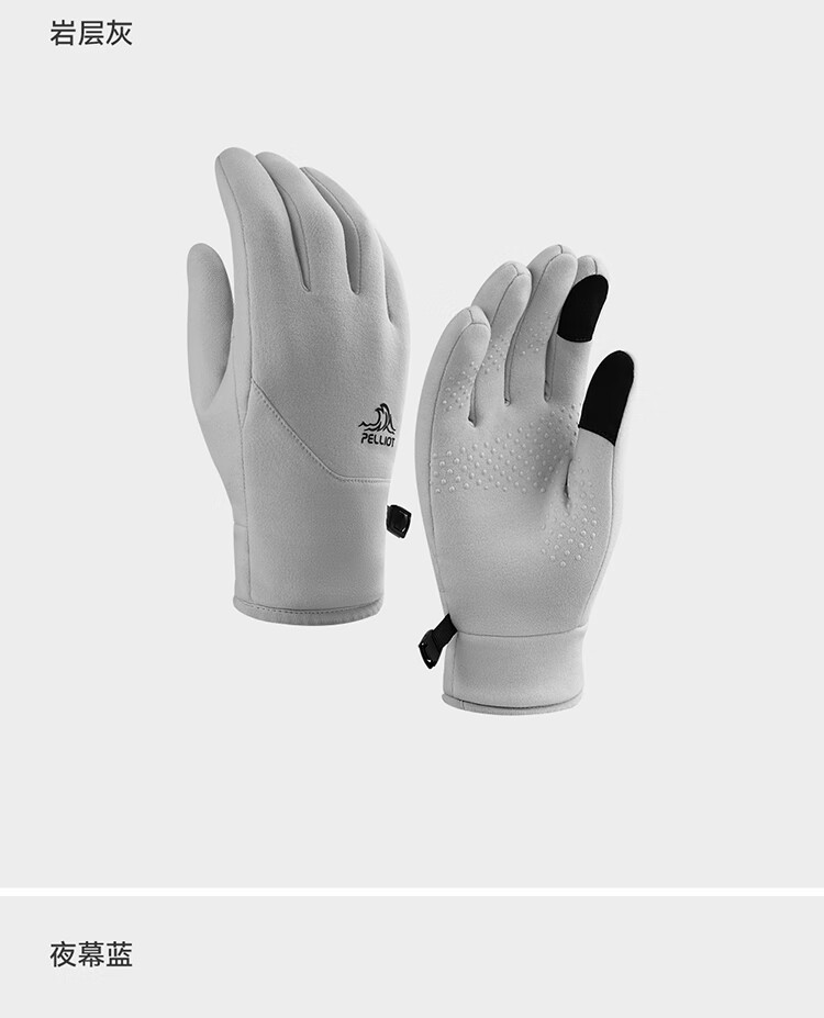 伯希和(Pelliot)户外骑行手套男秋冬季抓绒登山御寒保暖五指手套女105431003灰M