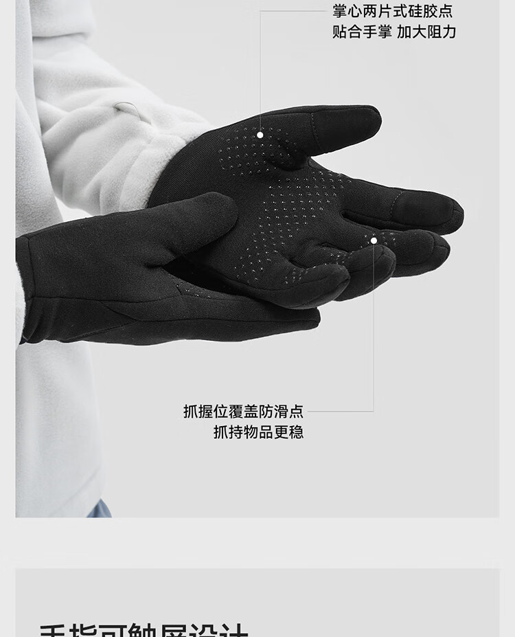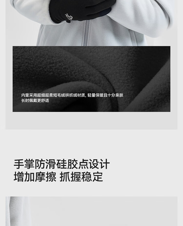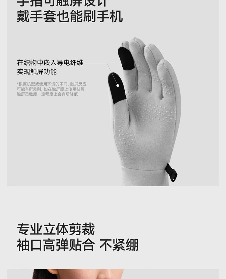 保暖性能超乎预期,零下天气双手依旧温暖。材质亲肤柔软,佩戴触感舒适无束缚。指尖触屏灵敏,户外操作手机无需摘脱。细节做工扎实,无多余线头,耐磨抗风。