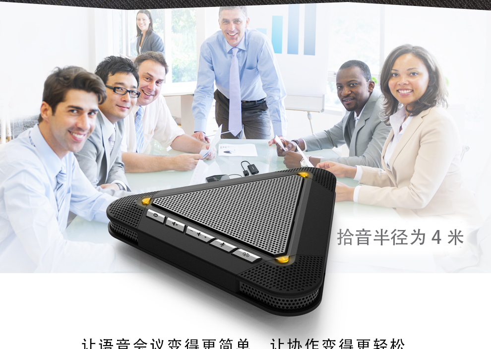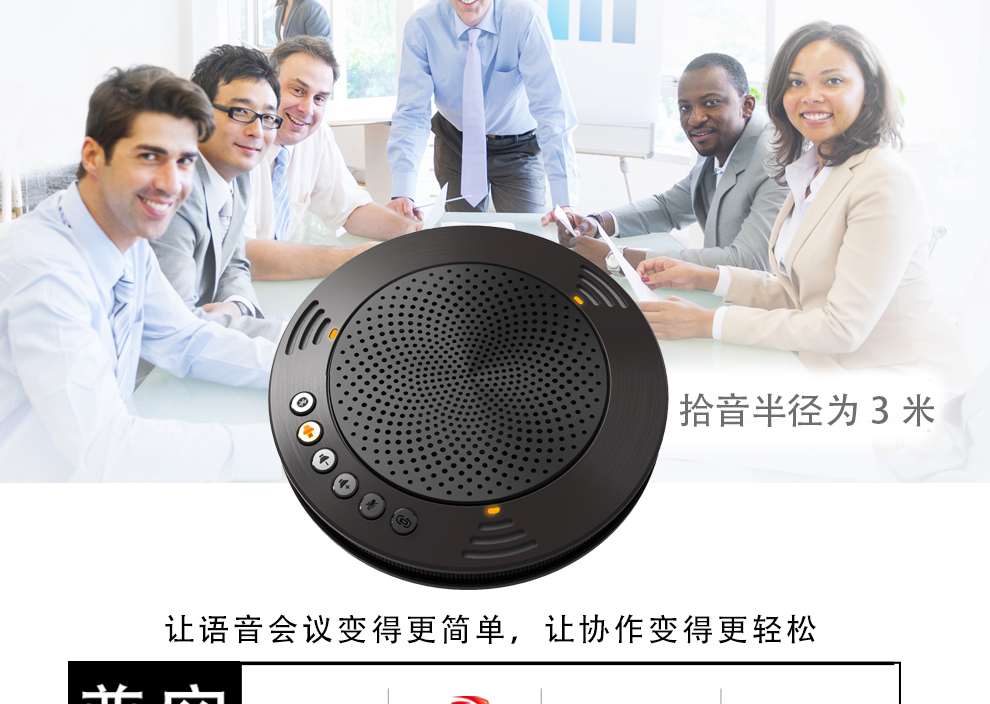 降噪效果:音响效果良好 通话效果:公司会议用了一段时间,通话声音特别清晰,无杂音。