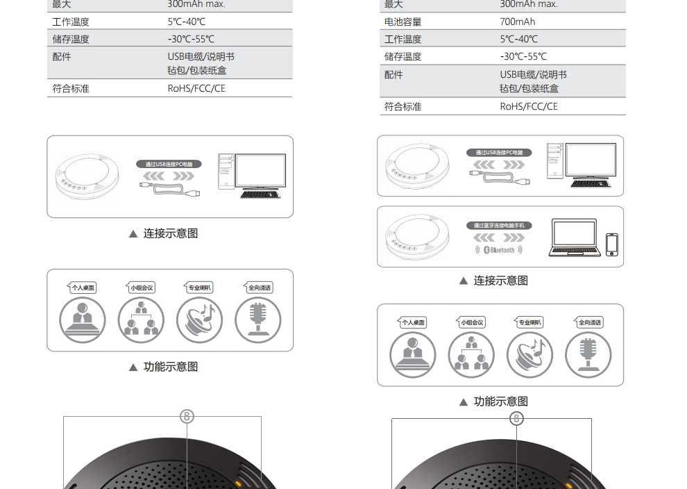 做工精良,小巧便携。即插即用,可有线连接或蓝牙连接,使用方便,声音清晰。