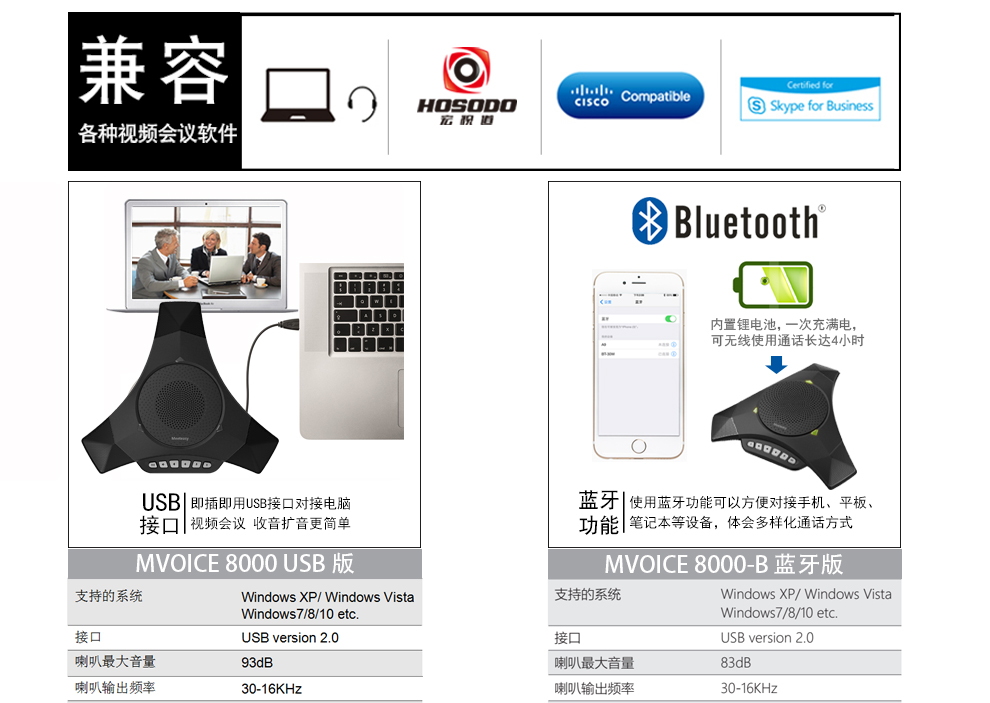 好会通(Meeteasy)USB视频会议全向麦克风 无线会议麦克风 无线会议设备扬声器设备 MVOICE 8000EX-B 蓝牙/USB版