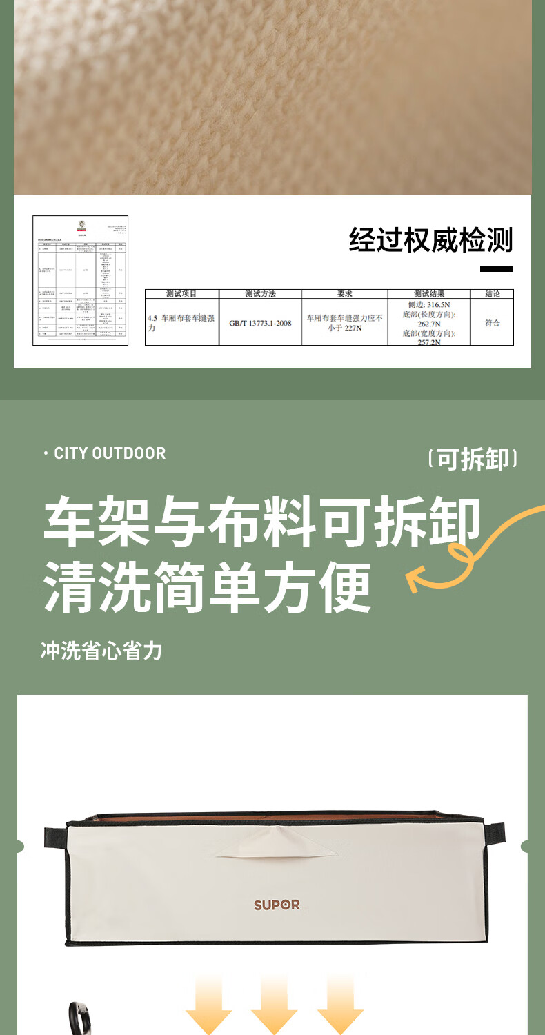 强烈推荐这家店的商品,物美价廉,质量可靠。物流快,商家服务好,售后有保障。这个折叠推车不占空间,放在车的后备箱是真的完整的刚好,目前还没有试过,但看起来很能装,京东苏泊尔的出品值得信赖哦~