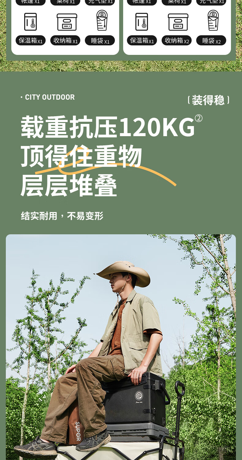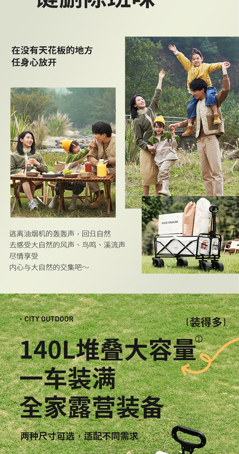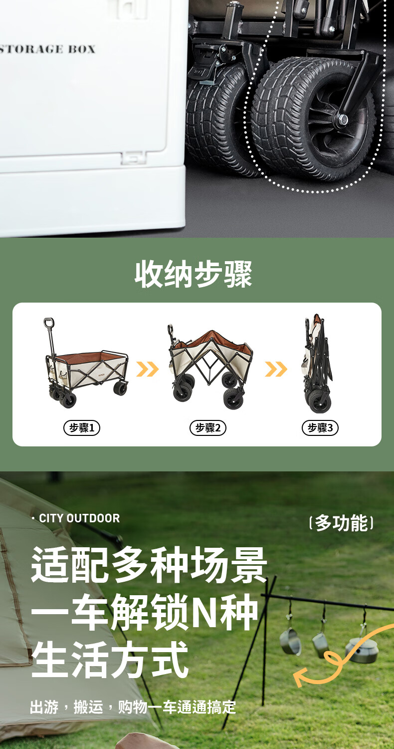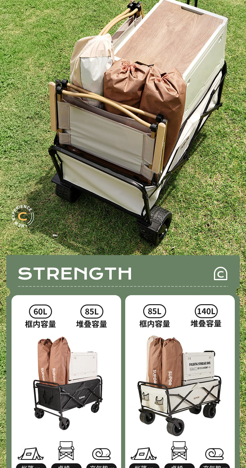 苏泊尔户外露营推车营地车折叠拖车聚拢型野餐摆摊旅行拉车儿童可睡觉 白色 140L 有刹车 碳钢车身+蛋卷桌