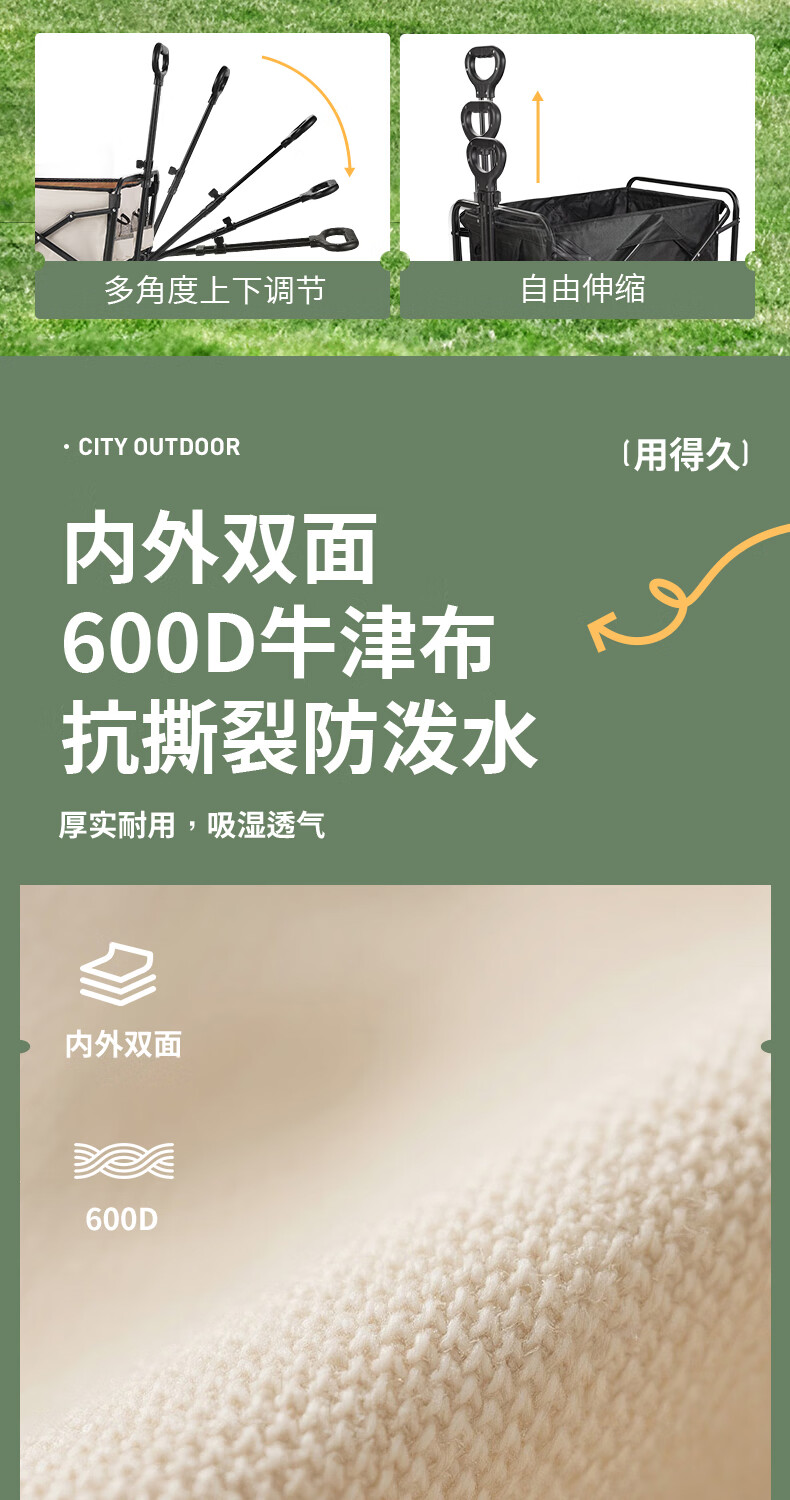 伯希和(Pelliot)HIKER露营车户外折叠手拉小推车便携野餐摆摊拖车16306003曜石黑