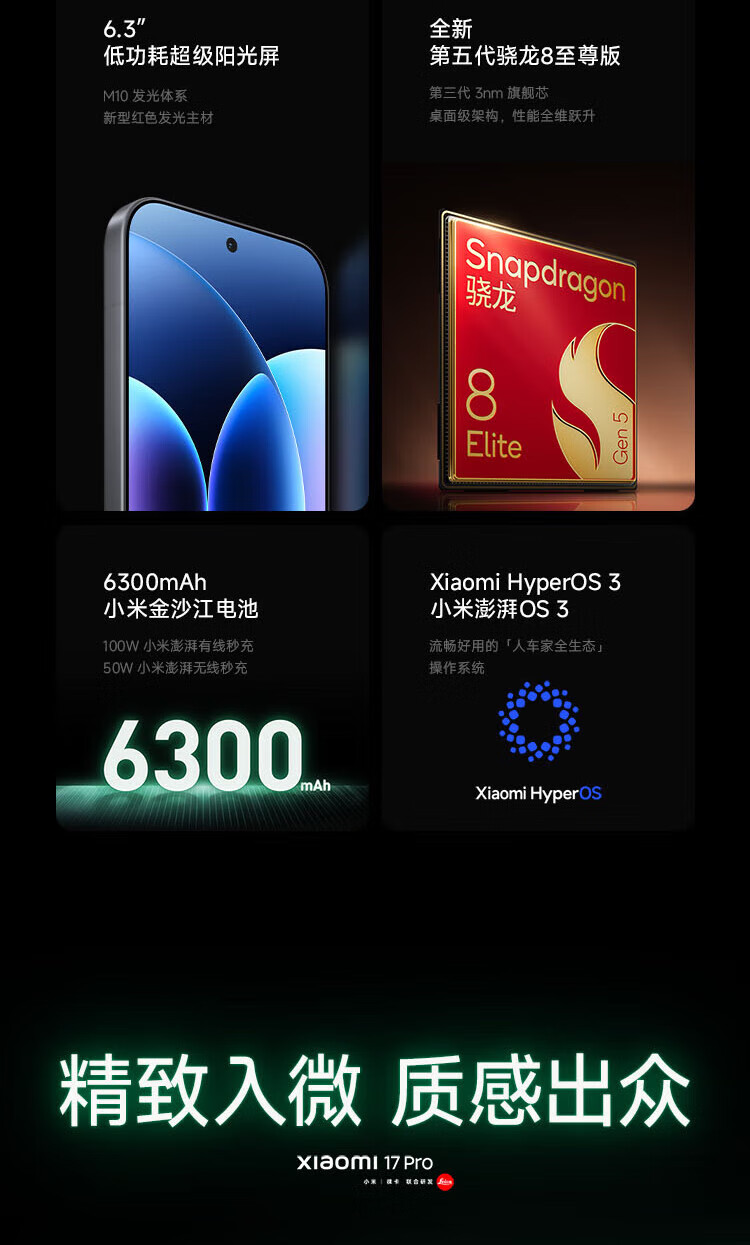 小米17 小米17Pro 小米17Promax 小米手机第五代骁龙8至尊版 小米17Pro[黑色] 12GB+512GB[单机+充电器] 正品已运行版本丨详情咨询客服