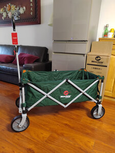 终于收到,双十一买了两家不同的这款露营车,一个送给妈妈,这款自己留着用。客观评价下,的确被这款车的颜值吸引了,也很喜欢品牌的名字Westfield。 商品直观感受:打开包装拎出来真心很重啊,质感还不错,布艺扎线还可以,但是细节欠妥;支架镀层的漆面瘢痕不少,不过户外用也不用太在意,估计这个重量是贴的吧,买的时候忘记看具体支架的材质了,就看这个周末拉出去用用看轮子和称重能力咋样了; 物流和售后:物流用的是中通,双十一期间三通一达的运力和人力真心比京东自营物流差太多,所以根本谈不上服务,到了小区楼下这么大的件不送上楼,也是很无语 联系店铺售后告知我不是自营店铺所以不用京东物流,说实话我在京东购物(尤其是全平台同样的商品)还真心是为了京东的物流和服务,店铺小二估计双十一也忙,除了抱歉说帮我催,但是昨天联系的今天都没有跟进,下午2点我还是自己去小区门卫托回来的,有点儿无语。 既然是品牌旗舰店铺,就算不是自营,售后服务还是要提升下吧,期望后续用车过程中不要让我失望。 虽然有不尽如人意,但是还是给个5星好评吧,今年大家都不好过,希望店家提升服务能力哦!