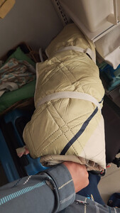 携带很方便,上面有根袋子可以捆起来,非常方便。展开后特别大,足够两个人躺,是户外露营神器。还有防潮功能,躺了一下午,一点潮气都没有,不错。
