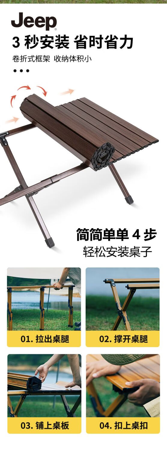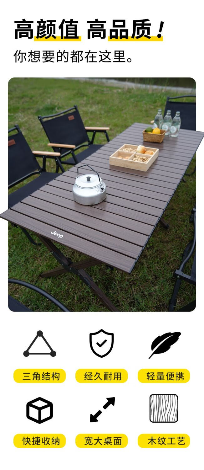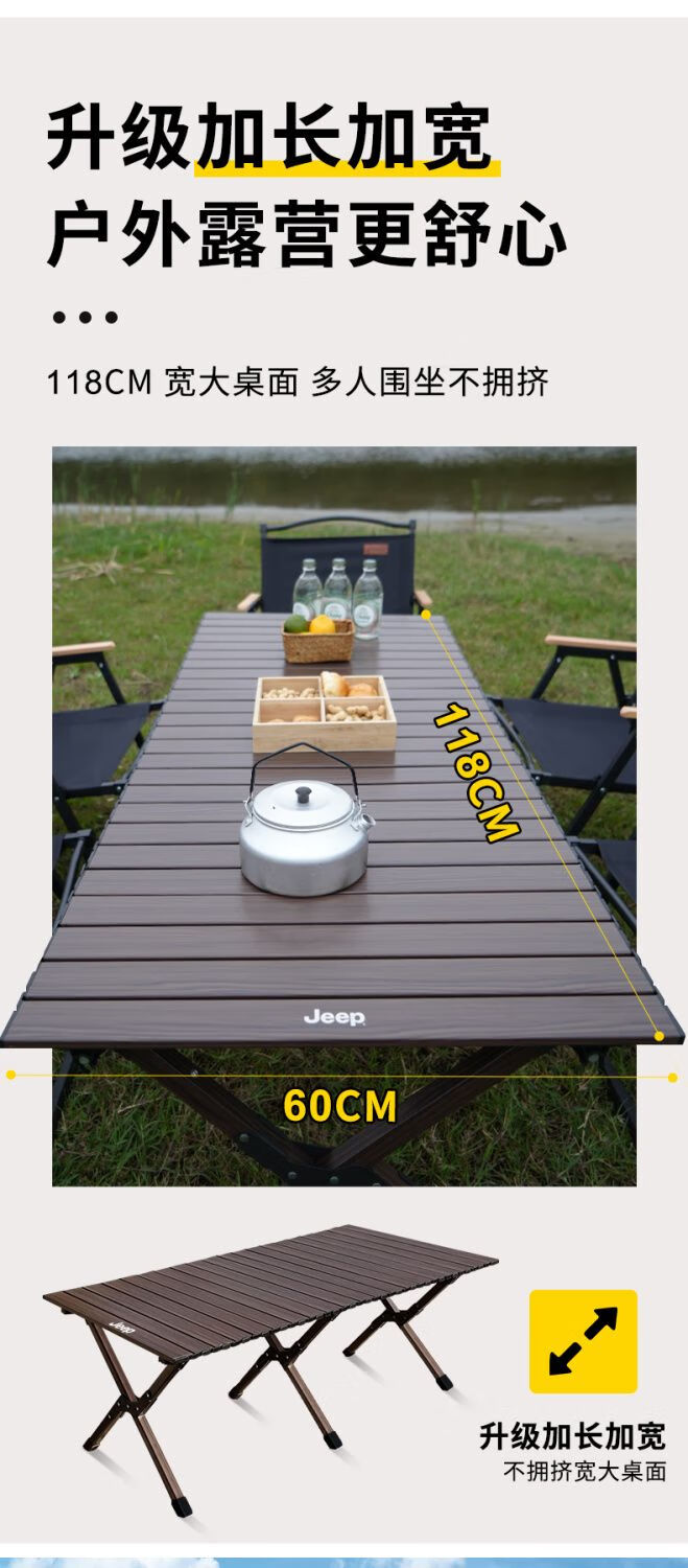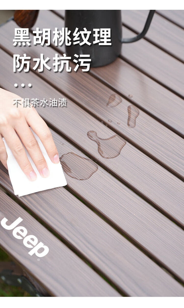 JEEP吉普户外折叠桌椅露营便携式野餐桌子野营茶桌全套装备蛋卷桌庭院 黑胡桃色中号+椅子4张