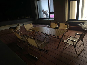 这套桌椅大小很适合我们全家人。重量也比较友好,收纳也比较方便。比我之前买的木质的好多了。无论是颜色款式都很合我心意。我们一家五口人都可以用。把桌椅搬到大自然中去露营吃饭。很好的陪伴。