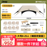 JEEP黑胶天幕户外遮阳防雨加强防晒沙滩津布露营凉棚雨棚懒人六角天幕 【精致欢聚版】黑胶一桌+卡其克米特椅*8