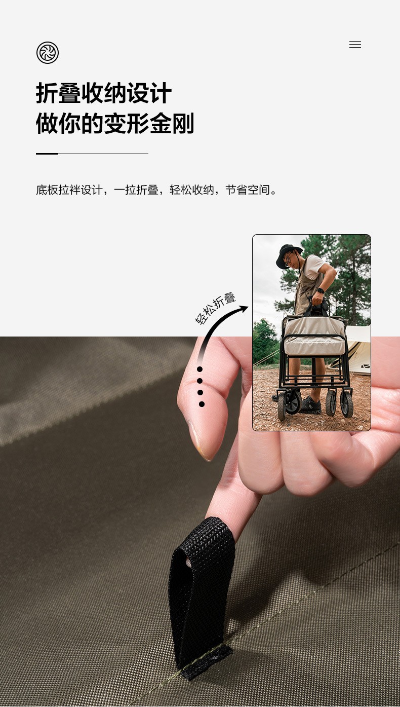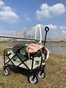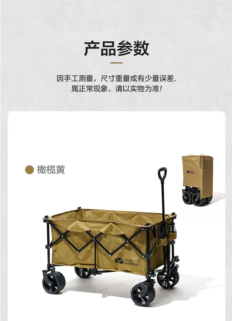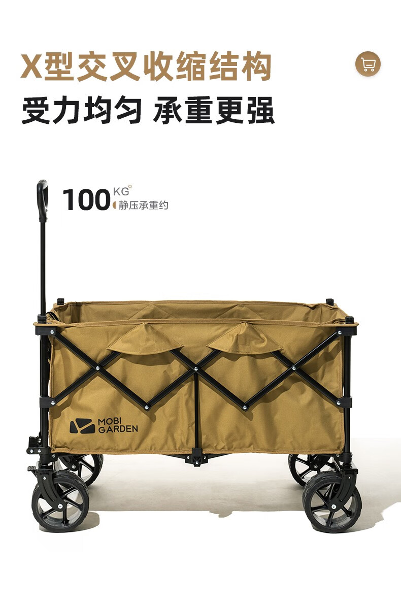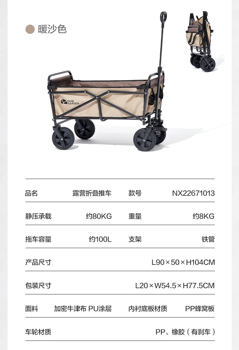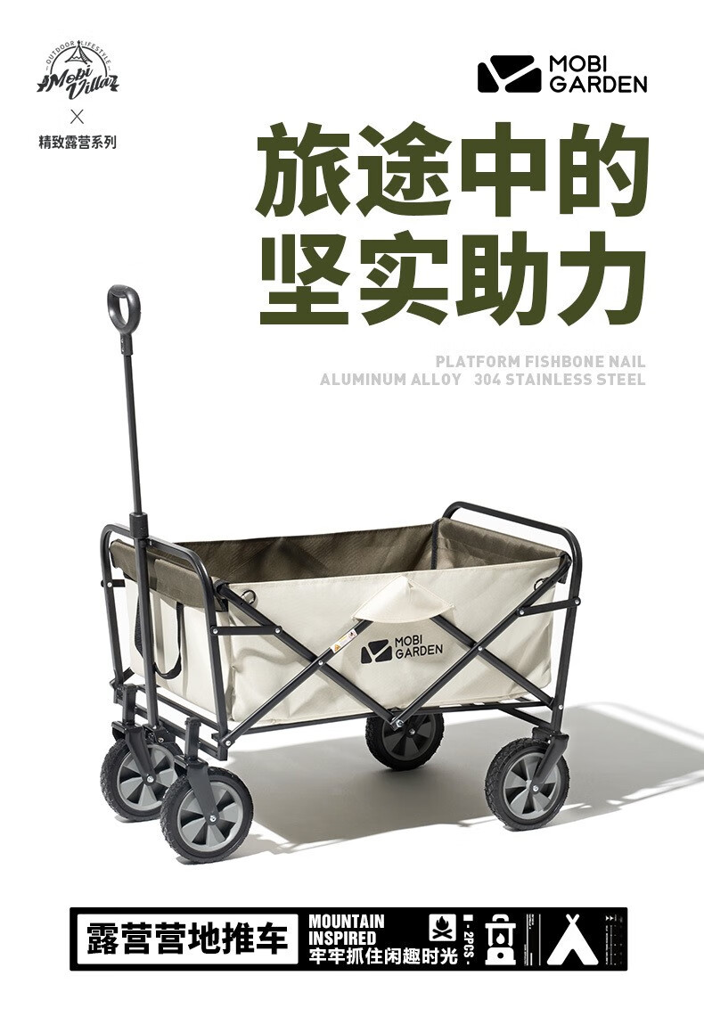 牧高笛(MOBIGARDEN) 推车营地车户外露营便携大容量折叠拖车野营野餐手推小拉车 150L 有刹车 -橄榄绿推车