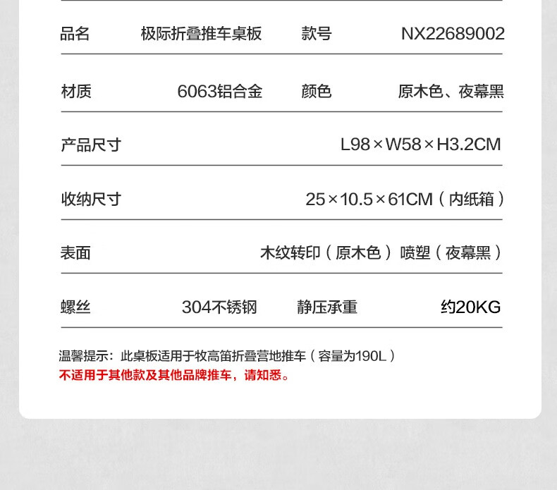 westfieldoutdoor 铝合金桌板户外营地我飞露营推车配件