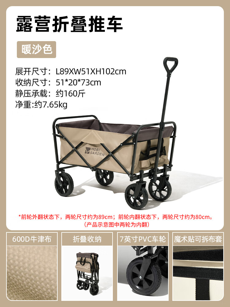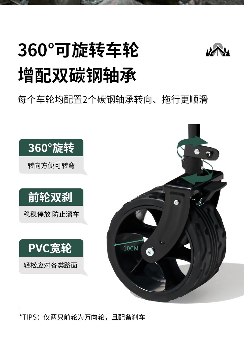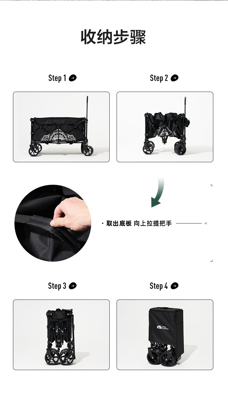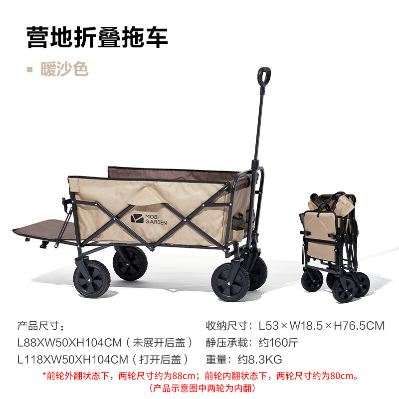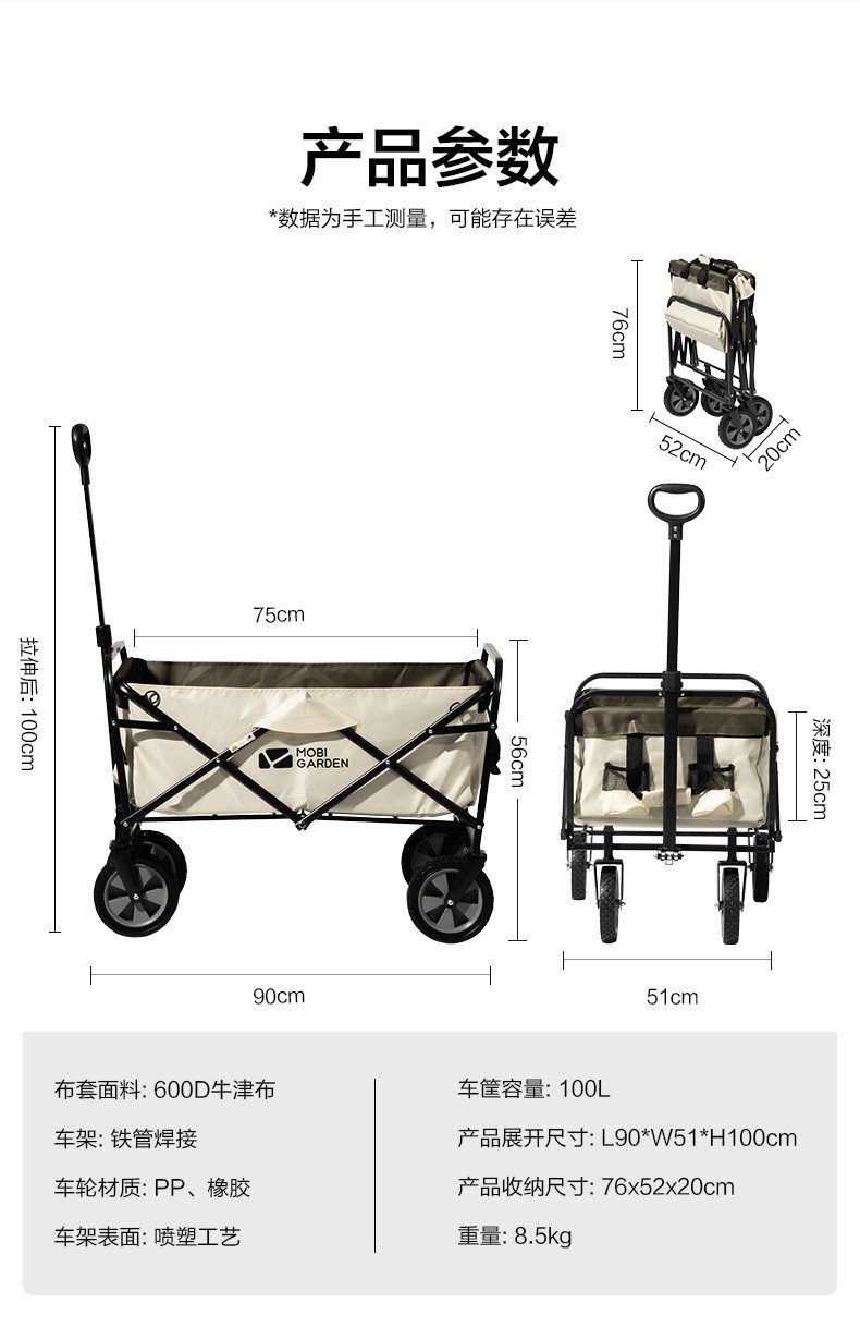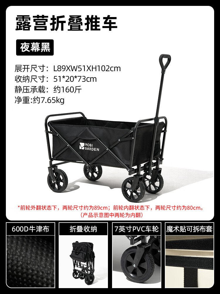 牧高笛(MOBIGARDEN) 推车大营地车户外手推车便携式露营车折叠野餐小拉车 营地车星际 190L 有刹车 -曜石黑加大推车