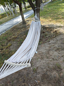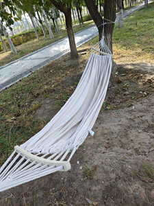国庆节放假不想去睇人头,所以买了张这样的吊床回老家渡假,想不到老家也是今日买明天就可以收到货,购买体验棒棒哒!京东速度真的是水棉花无得弹👍装好后我138斤重的坐上去一点问题都没有,唯一不好的就是有的线头收得吾好,其他暂时没有问题!