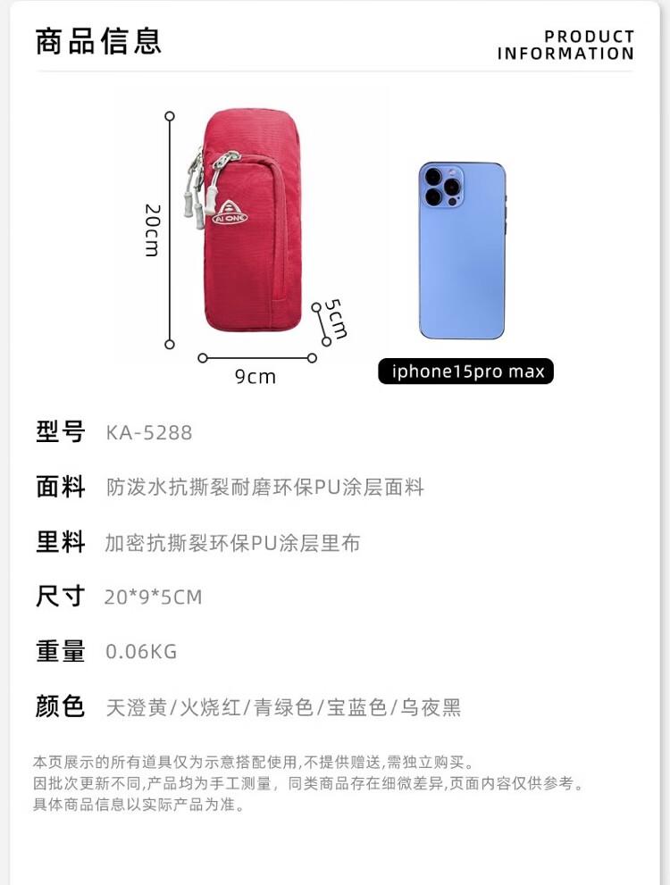 购买注意:本手机挂包需要配合背包肩带使用,不能单独作手臂包使用,购买须知!