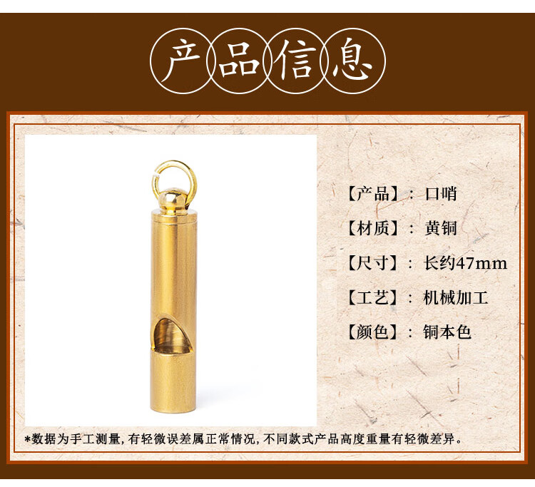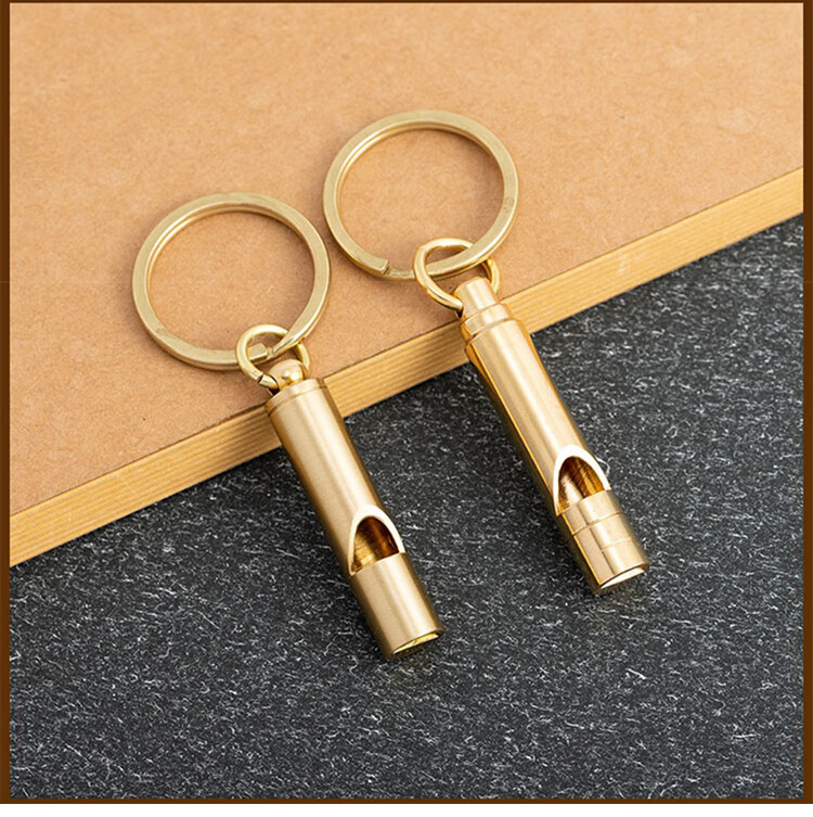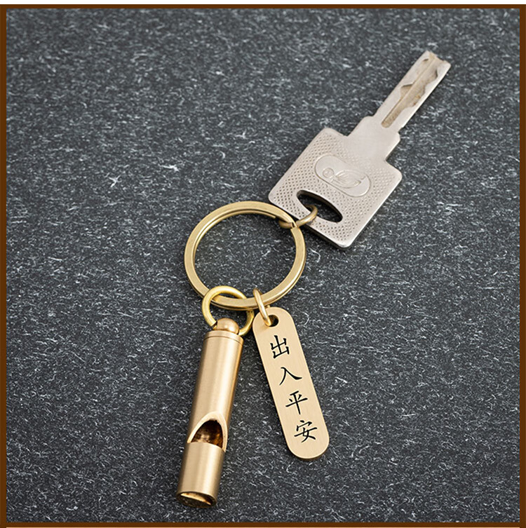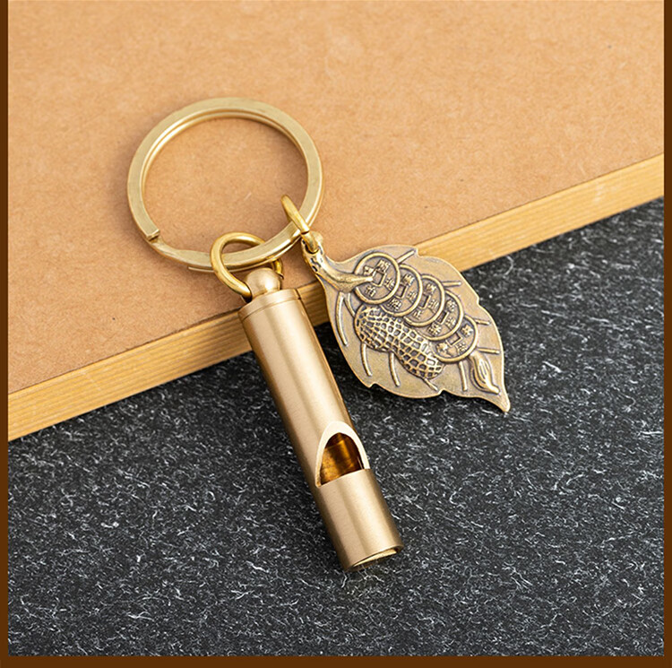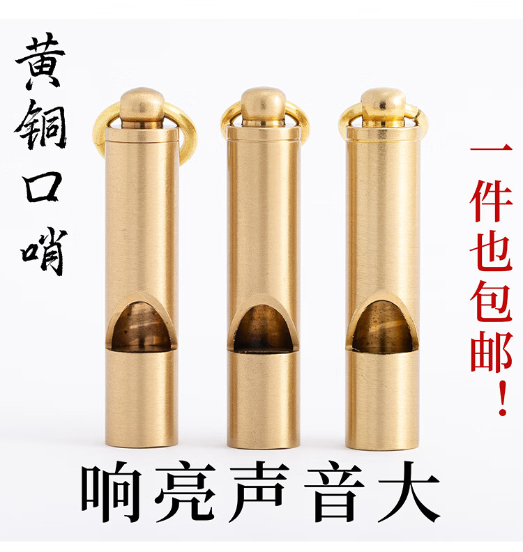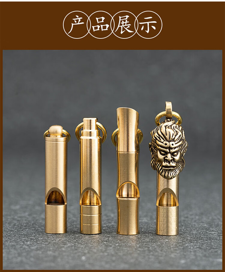黄铜户外救生口哨子竹节钥匙扣挂件儿童比赛高音哨子登山训练装饰 【大圣口哨】+大铜圈