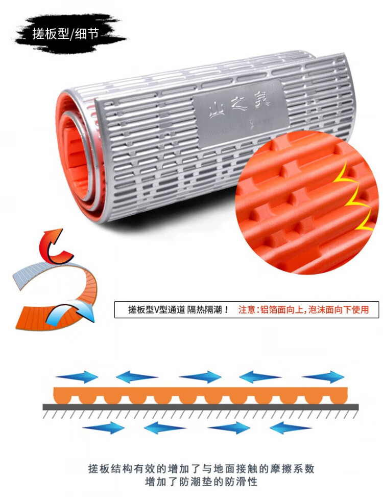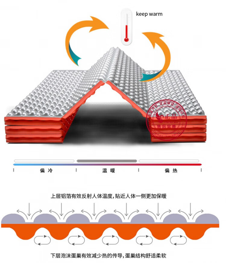山之泉Mountain Spring 户外铝箔蛋巢折叠小坐垫蛋槽垫便携保暖防潮成人 四折铝膜小坐垫-橘色/送收纳袋