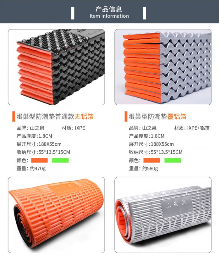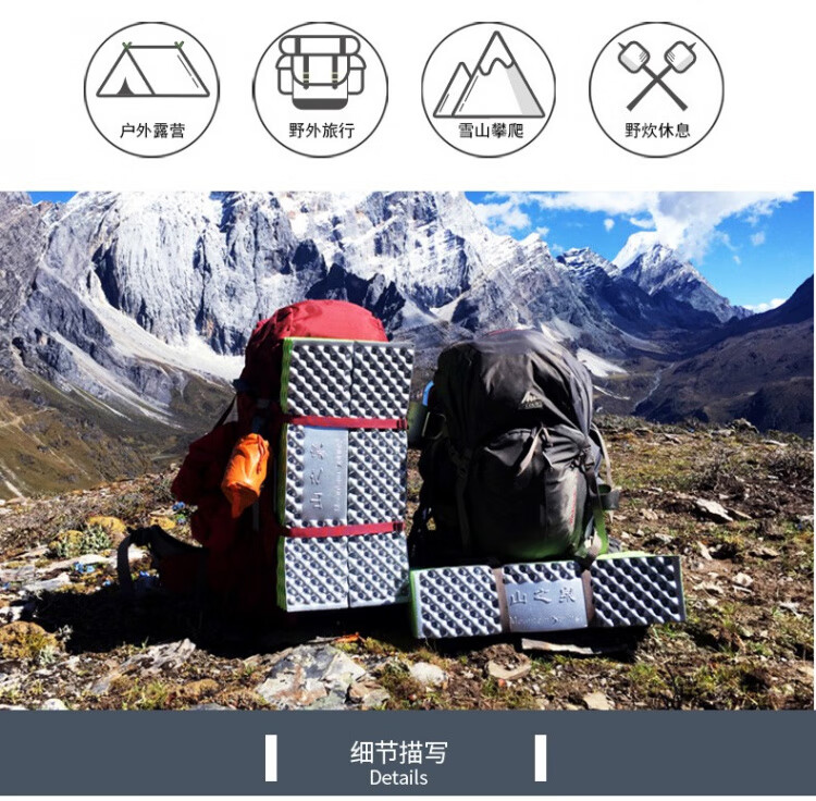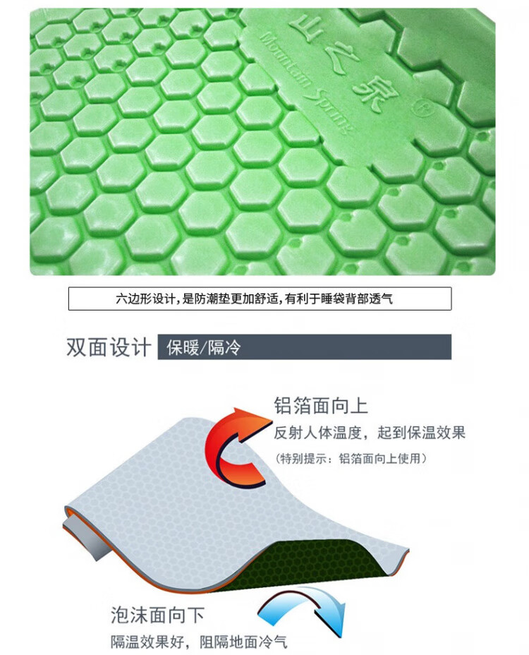 山之泉(Mountain Spring) 蛋巢双面垫子折叠型便携睡垫野营防潮垫户外徒步露营加厚垫子 覆铝箔金色+收纳袋+捆扎带