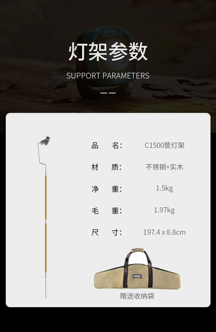 山力士山力士C1500PRO全地形户外露营照明营地灯帐篷灯钓鱼灯大容量续航 卡其色