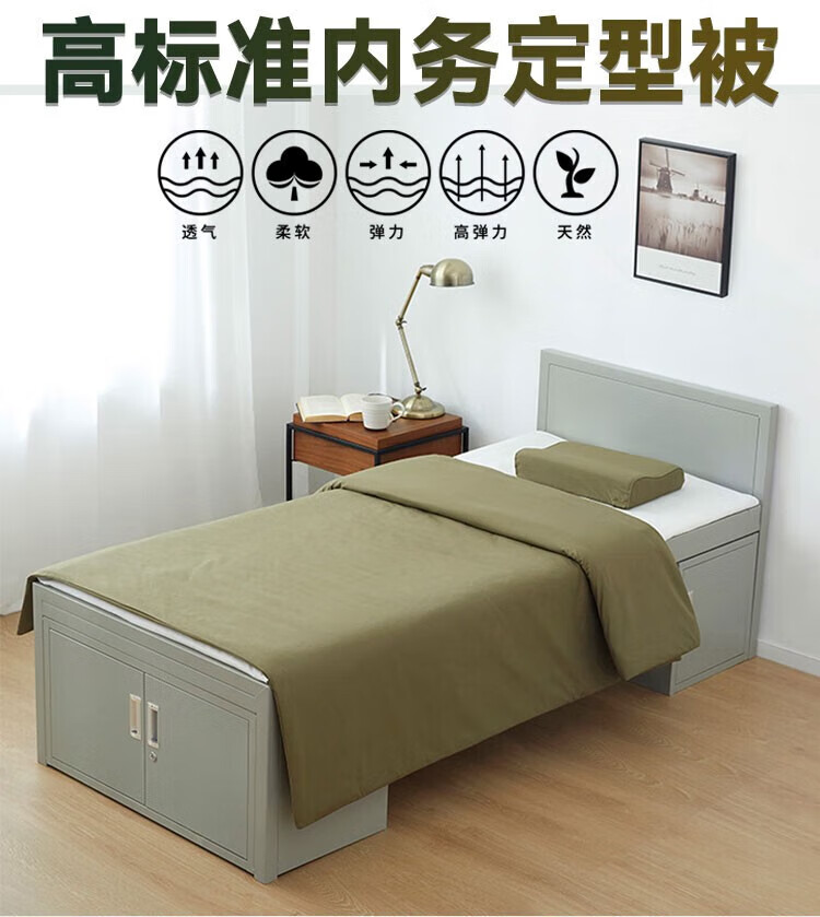 际华 3565模型被手工定型被纯色内务棉被可盖成型单人手工豆腐 火焰蓝(四折定型被)