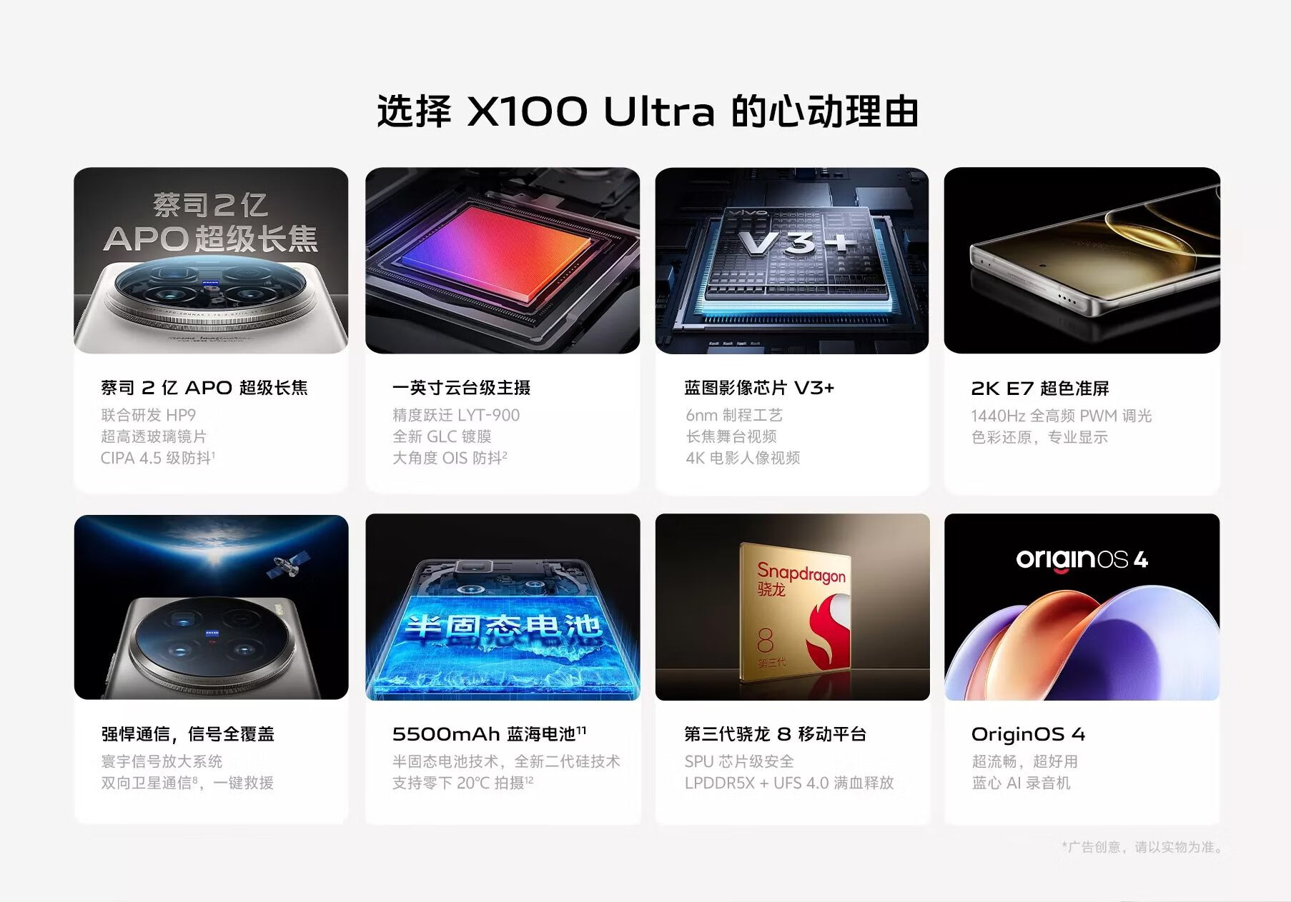 vivoX100 Ultra手机蔡司2亿APO长焦拍照x100ultra手机 深空灰 套餐一X100U+原充12GB+256G