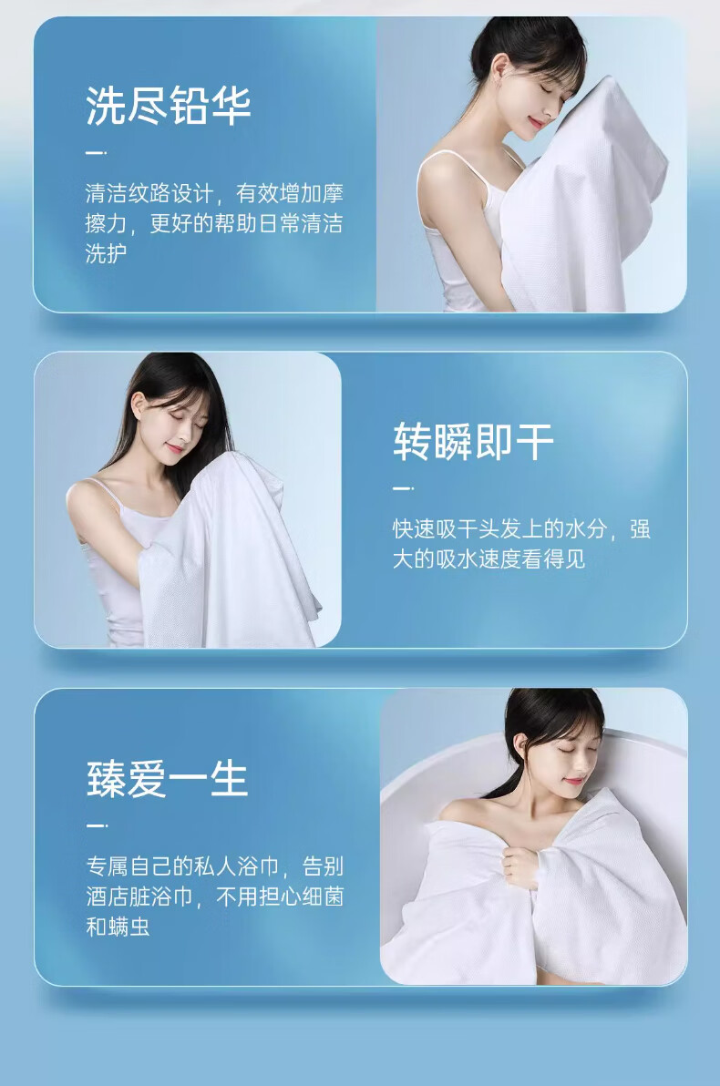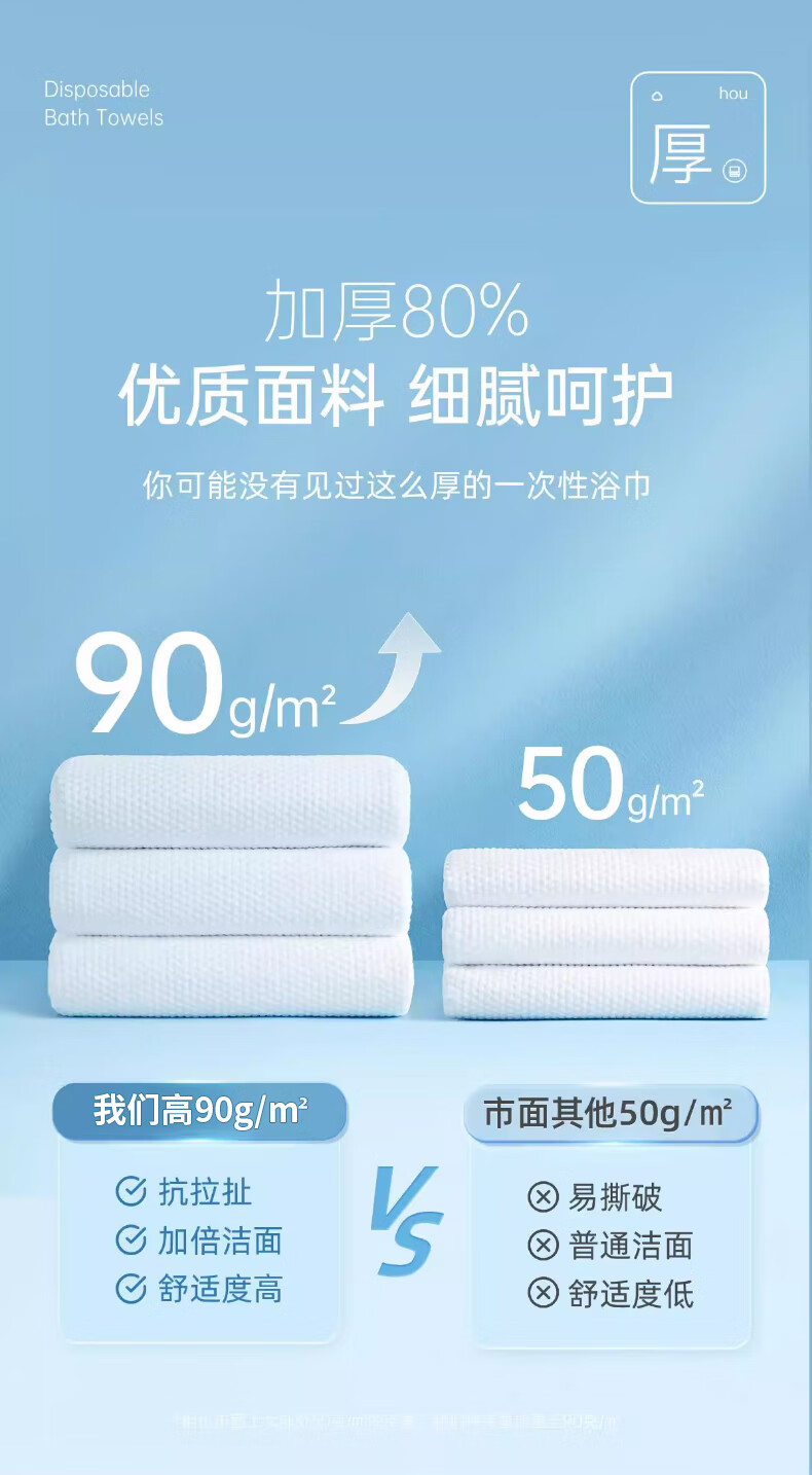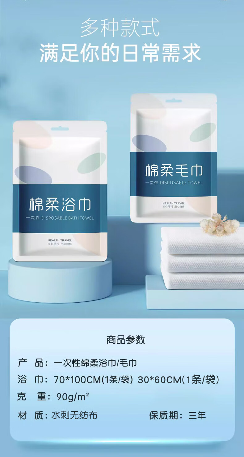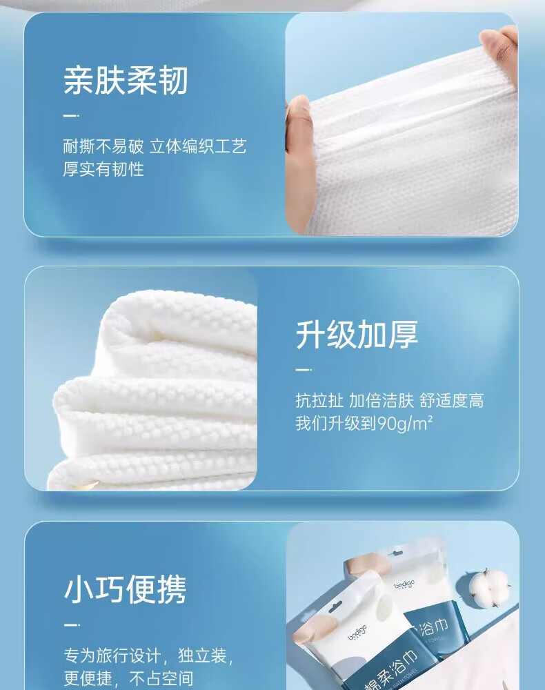 送达的非常快,包装也很严实。打开后毛巾尺寸比想象的大,30*60cm用起来很顺手,擦脸擦身体都够用。压缩得很紧实,泡水后展开很厚实,不掉絮。出门带着不占地方,用完就扔特别方便。质量不错。