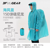 三峰出三峰轻量化防水雨衣户外登山徒步男女超轻爬山旅行钓鱼便携雨披裤 标码没帽檐-衣袖款-15D海风蓝