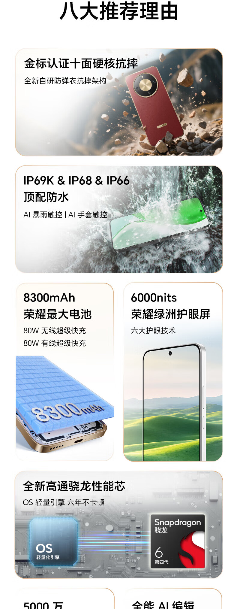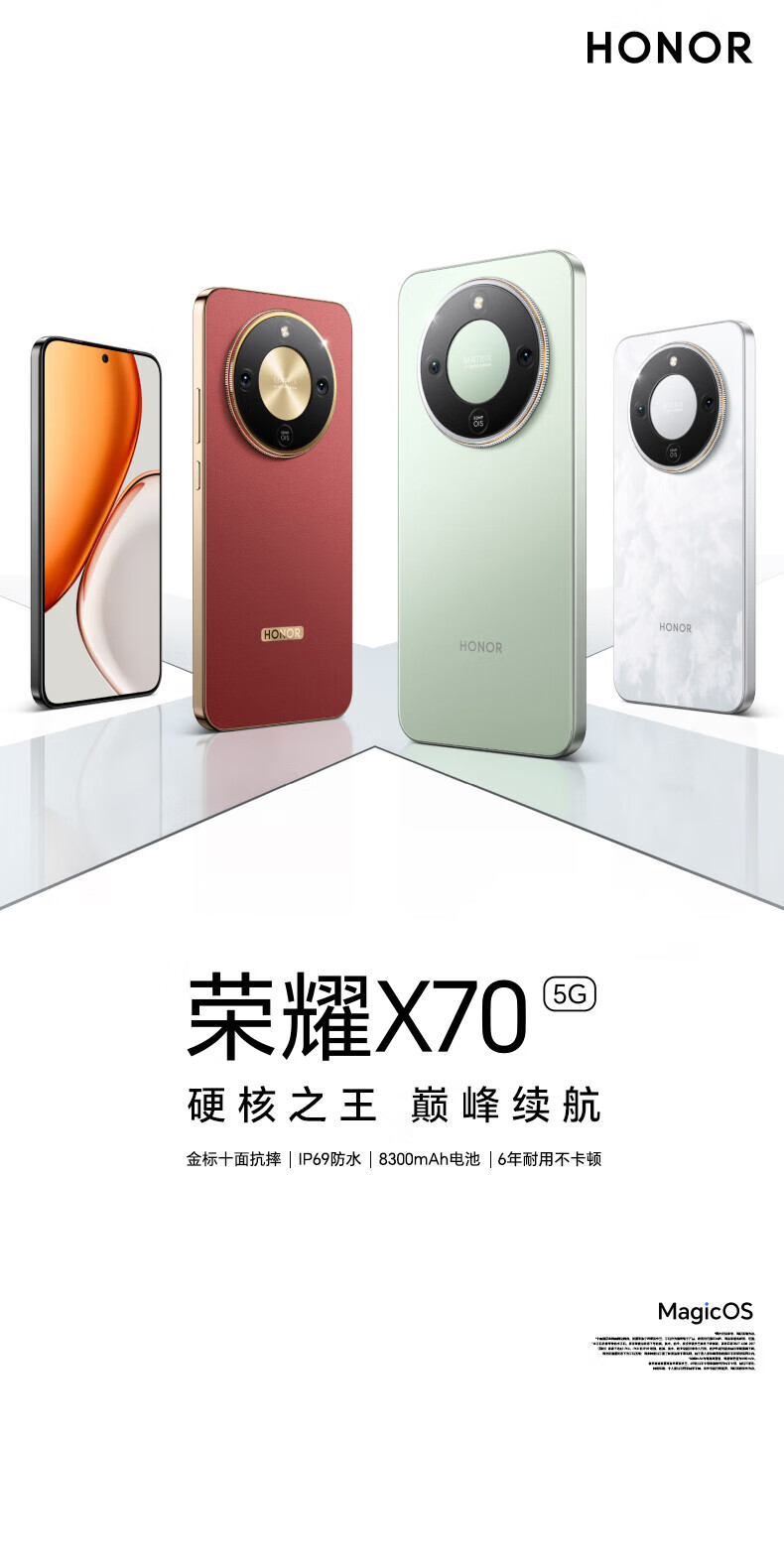 荣耀X70手机 金标十面抗摔 8300mAh青海湖电池 IP69防水 绿洲护眼屏 朱砂红 12GB+256GB 单机+原线原充+全国联保