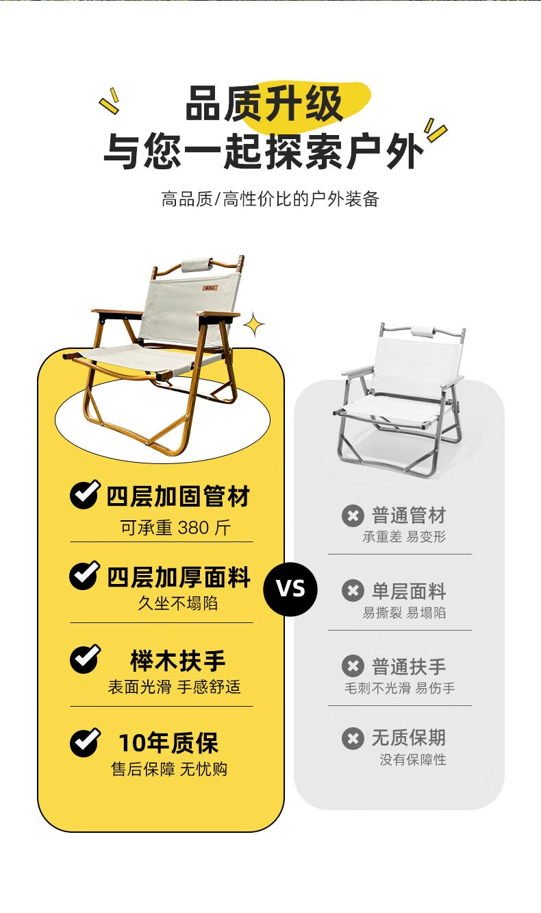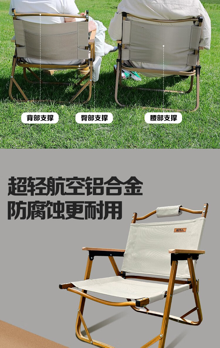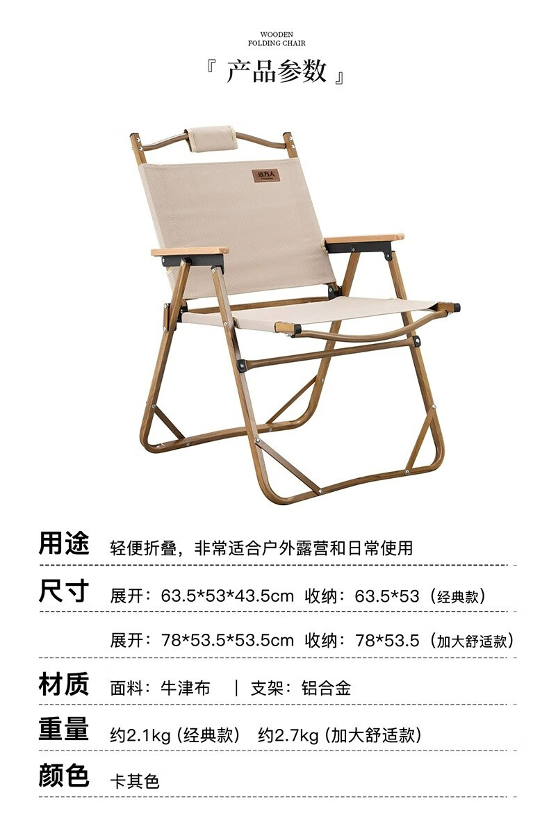 NatureHike挪客户外便携折叠椅 休靠背椅 旅游露营钓鱼休闲椅子超轻克米特椅 卡其色-小号