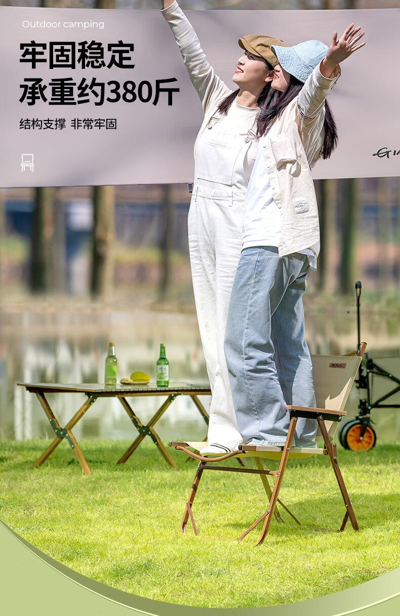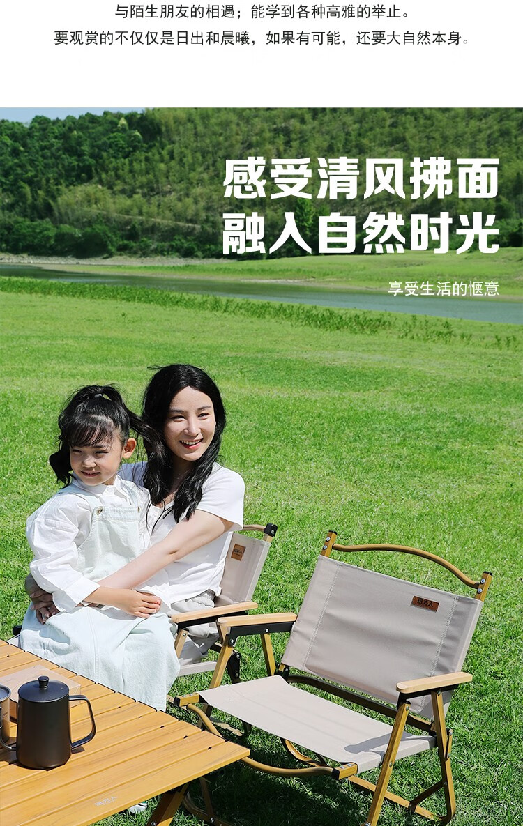 牧高笛(MOBIGARDEN)实木椅 户外露营野餐便携可拆卸实木折叠高躺椅云逸 象牙白